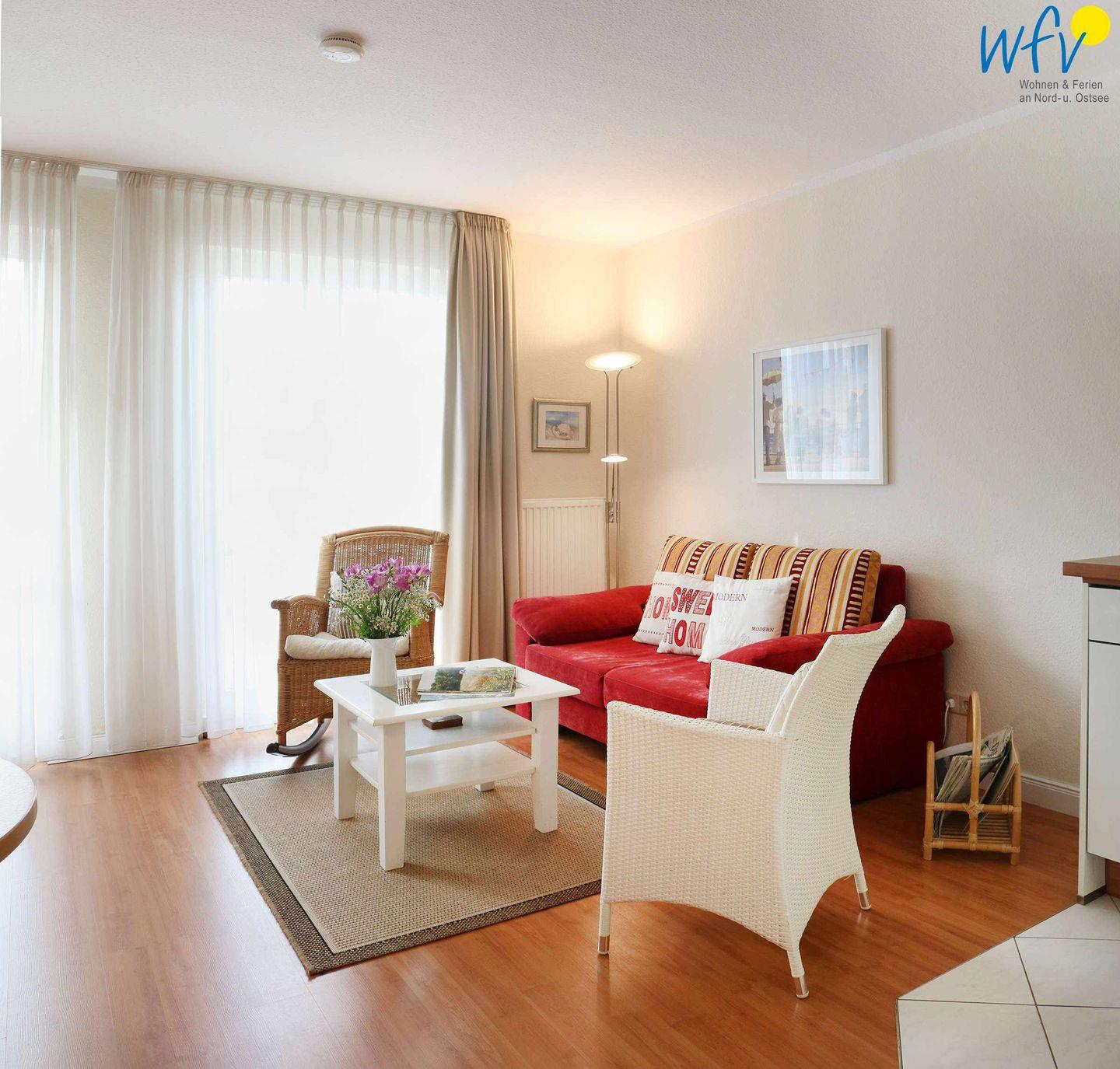 Ein besonders schöner Lichteinfall, modernes Mobiliar und eine liebevolle Einrichtung machen die Ferienwohnung auf Rügen zu einer Wohlfühloase für vier Personen. Ein heller und behaglicher Wohnraum mit offenem Koch-/Essbereich und gemütlicher Couchecke, ein separates Schlafzimmer mit Doppelbett, eine Diele und ein Duschbad bieten Ihnen Platz zum Entspannen.