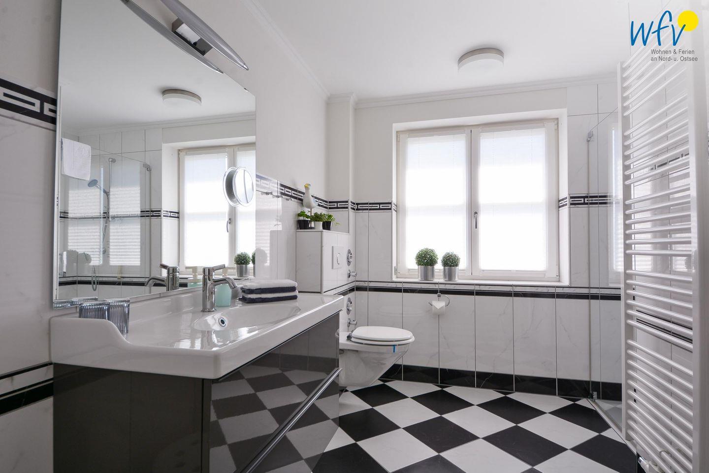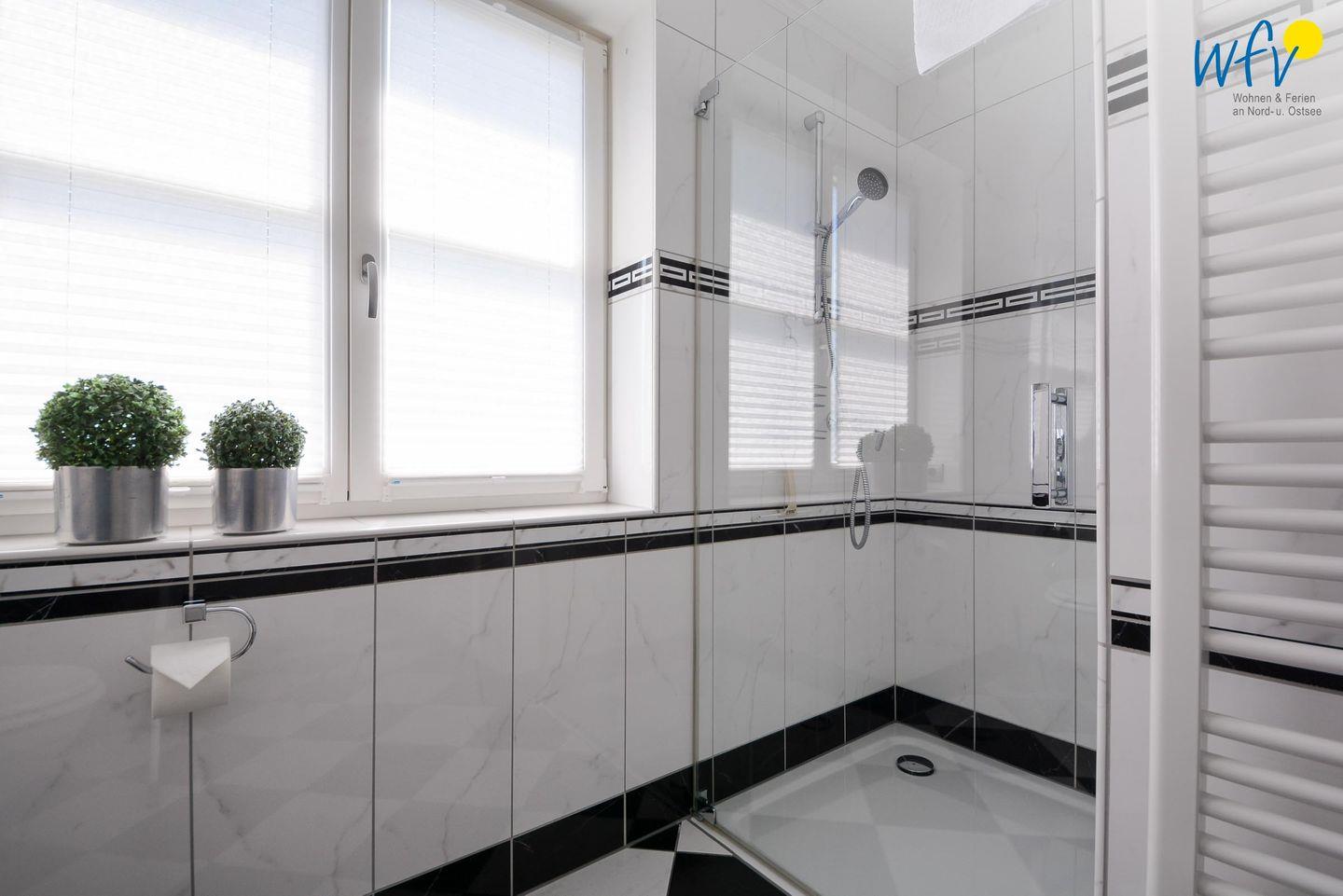 Das gepflegte Bad ergänzt den Wohnkomfort der Ferienwohnung.