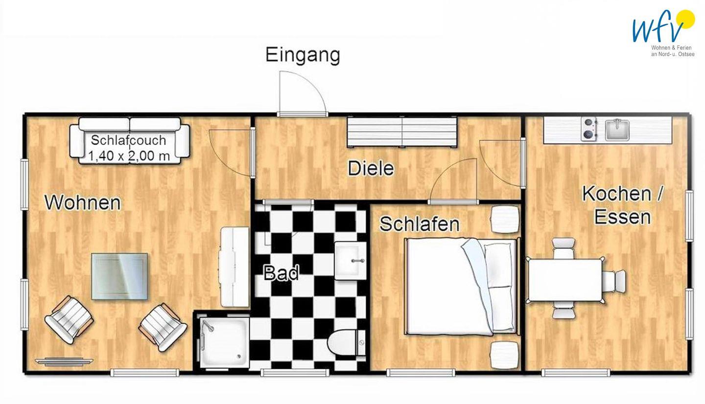 Diese gemütliche Ferienwohnung im "Ferienhaus Rademacher" bietet Ihnen Platz für bis zu drei Personen.