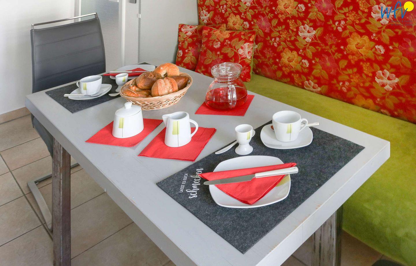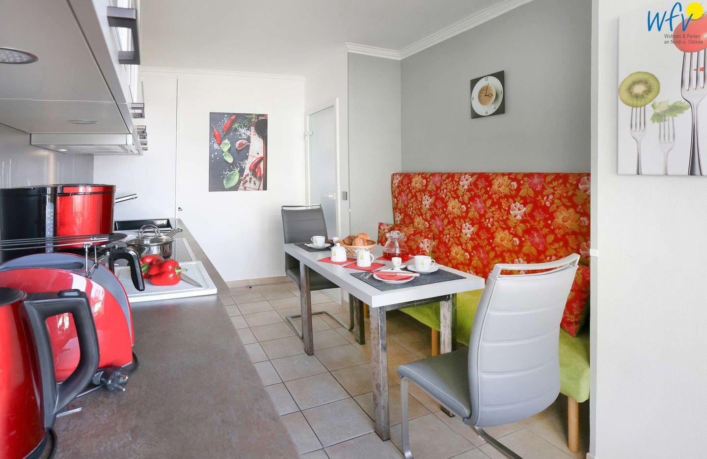 In dieser hellen und liebevoll eingerichteten Ferienwohnung werden Sie sich rundum wohlfühlen! Auf ca. 48 m² Wohnfläche erwartet Sie ein separater Schlafraum mit Doppelbett, eine separate komplett ausgestattete Küche (u.a. mit Spülmaschine und Mikrowelle), ein Duschbad sowie ein gemütlicher Wohnraum mit Schlafcouch (1,40 m x 2,00 m) und Relaxsessel.