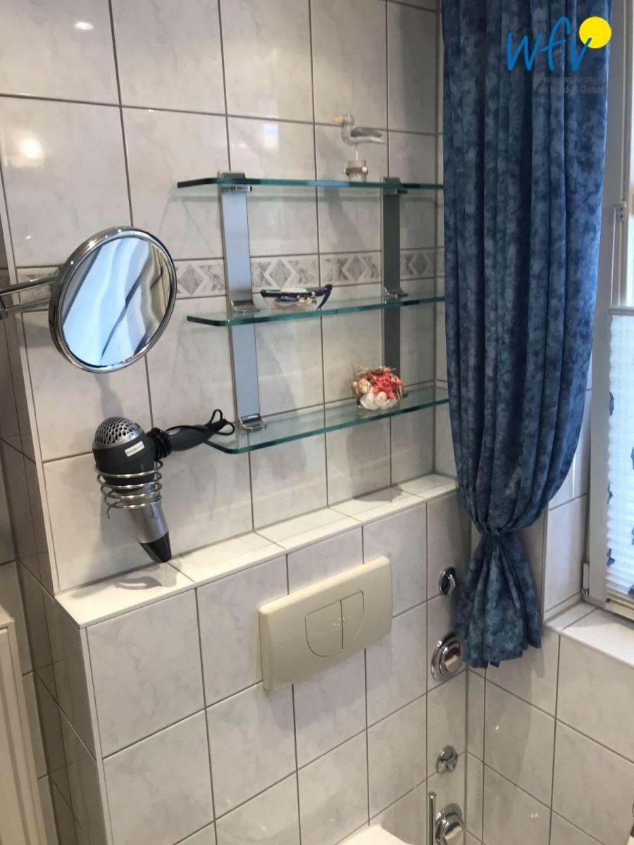 Das separate Schlafzimmer ist mit einem komfortablen Doppelbett ausgestattet. Sowohl dieser Raum, als auch der Wohnbereich hat einen Laminatboden. Im hochwertig ausgestatteten Duschbad mit Fenster sind helle Fliesen verlegt.