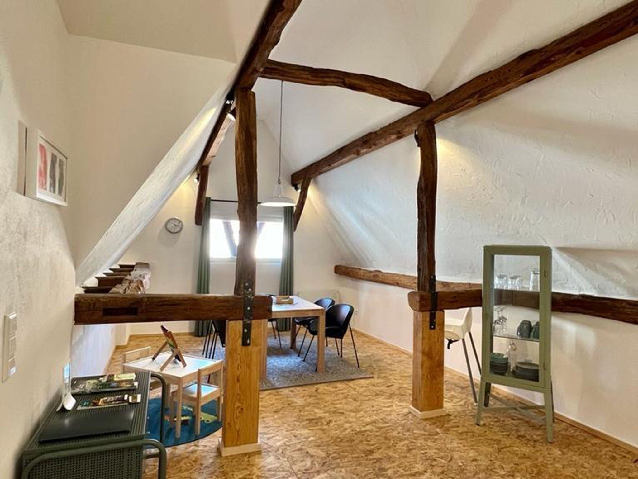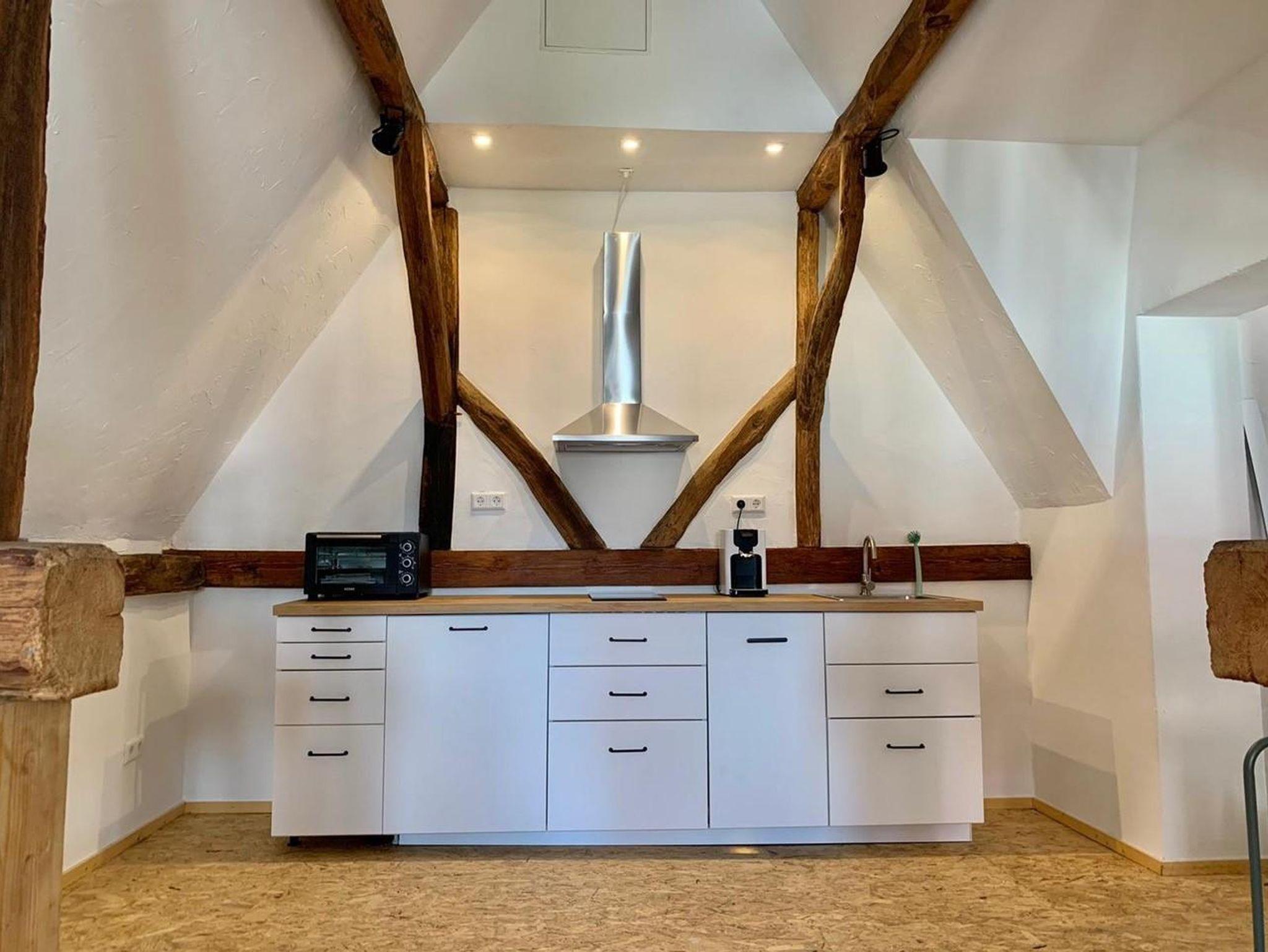 Eine Küche und Esszimmer auf 2 Ebenen und die gesamte Ferienwohnung ist neu renoviert.