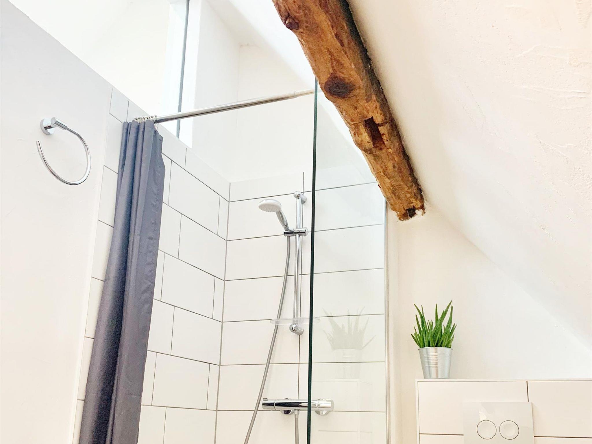 Ein großzügiges Wohn- und Schlafzimmer, ein separates Bad mit Dusche, sowie ein Gäste WC.