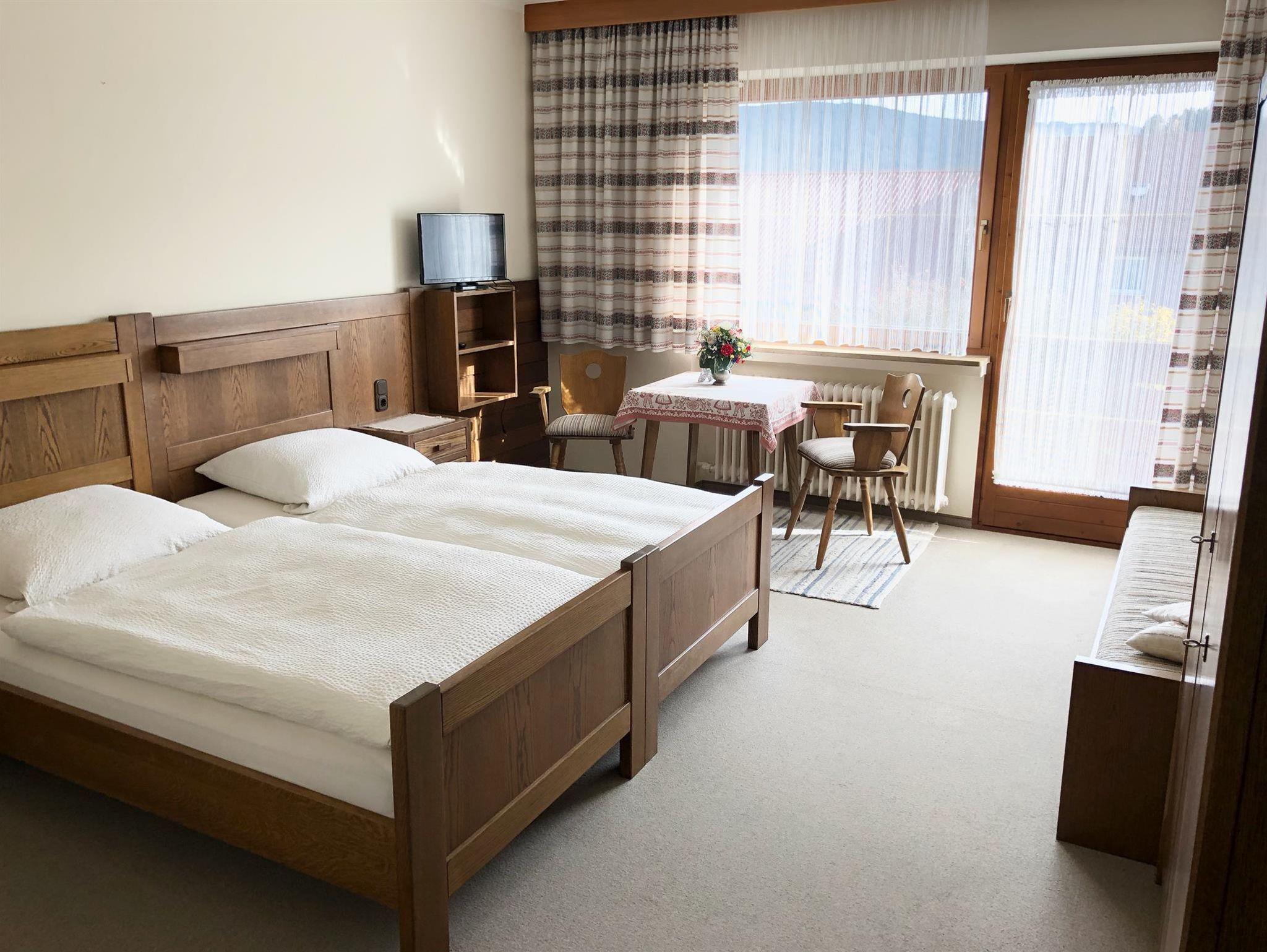 Gemütlich eingerichtete Zimmer mit DU/WC und Balkon, Frühstücks- und Aufenthaltsraum mit TV. TV im Zimmer.