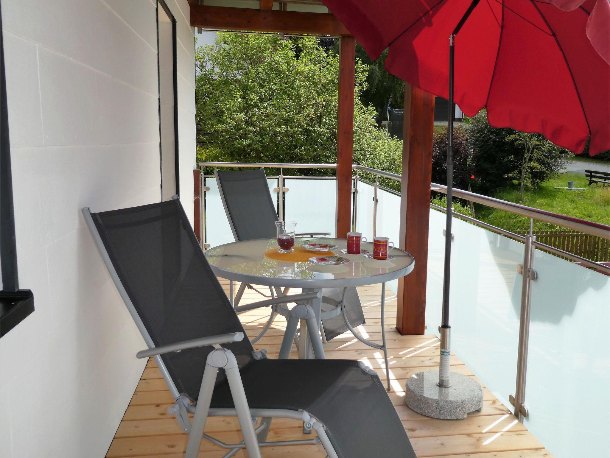 Jede Wohnung verfügt über einen eigenen Balkon oder Terrasse und Liegestühle.