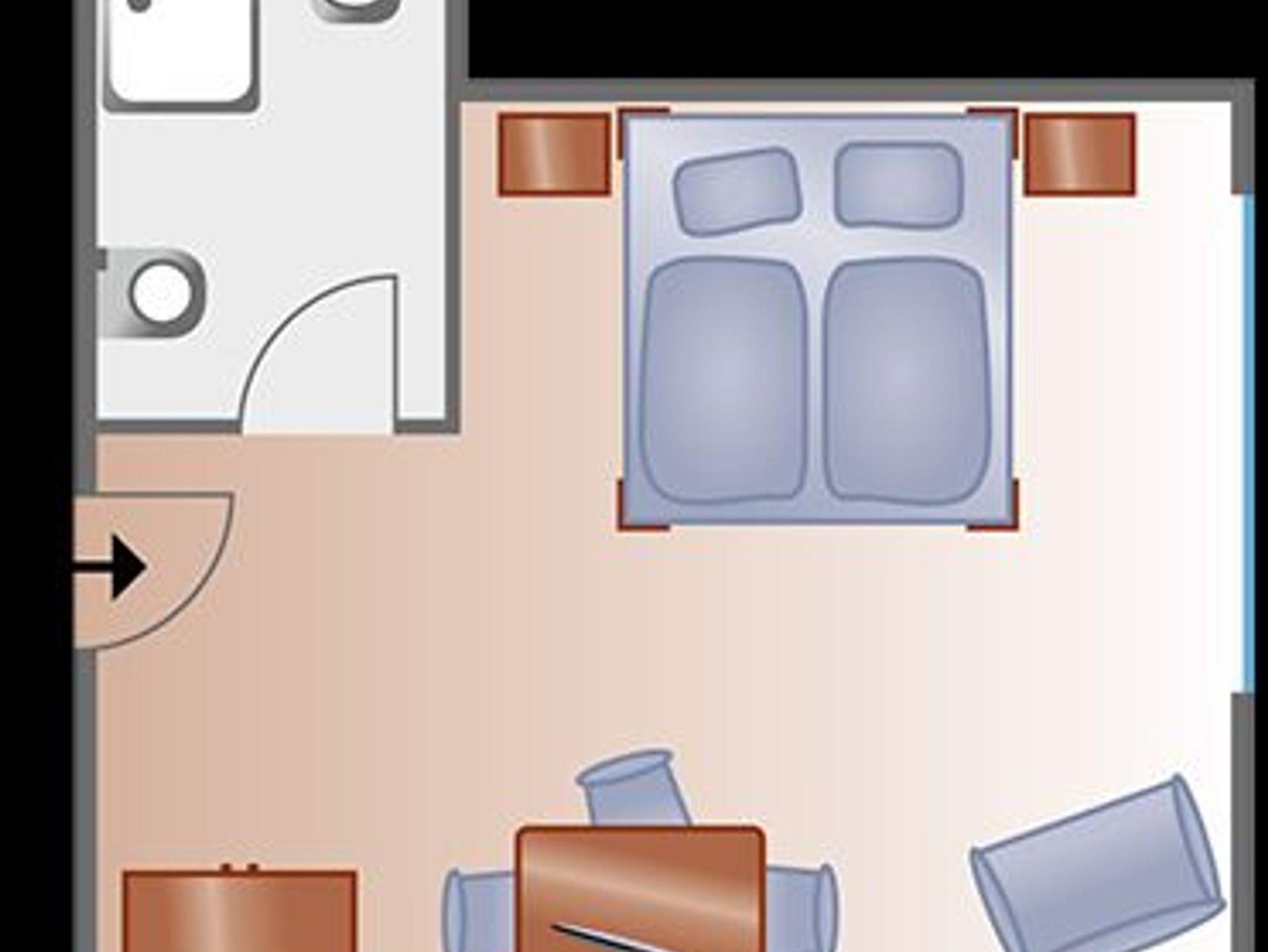 Das Doppelzimmer Nr.7 mit 24 qm Wohnfläche ist geeignet für bis zu drei Personen, dabei für zwei Erwachsene und ein Kind bis 14 Jahren, und liegt im Obergeschoss. Es gibt ein Schlafzimmer mit Doppelbett und einer Ausziehcouch und ein Badezimmer, das mit Dusche, WC und Föhn ausgestattet ist. Zur zusätzlichen Zimmerausstattung gehören außerdem ein Flachbild-TV, kostenloses Wlan und eine kleine Sitzgelegenheit.