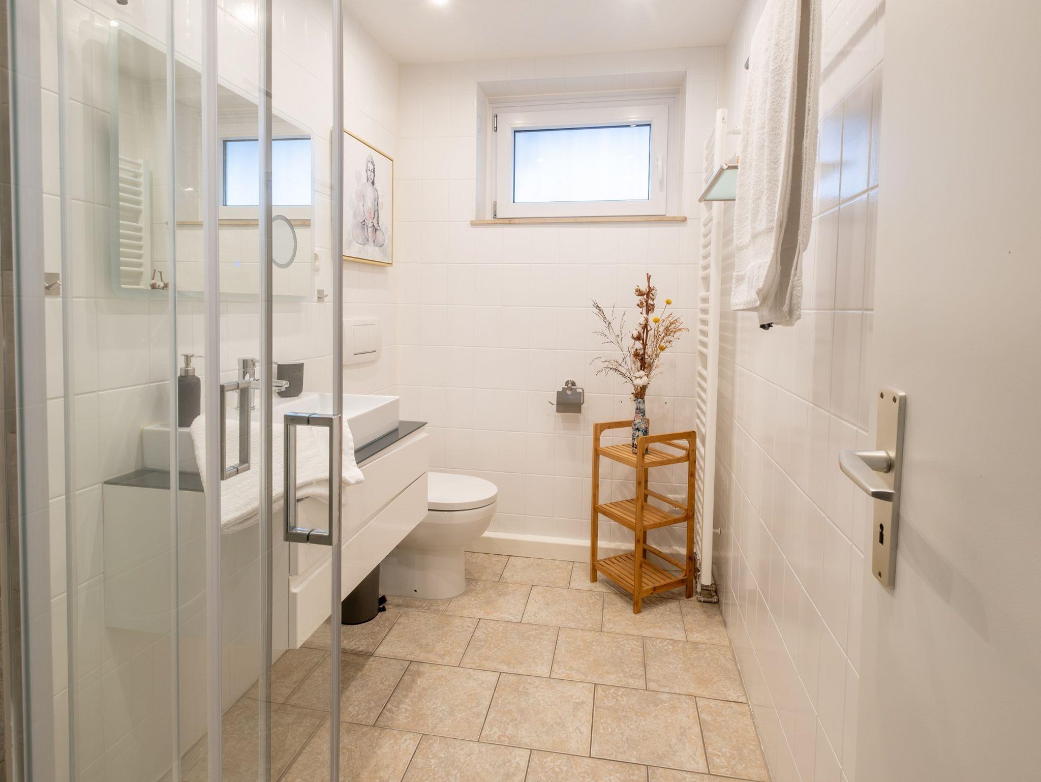 Unser frisch renoviertes und modernes Apartment „Sonne“ besteht aus einem großen und gemütlichen Ess- und Wohnbereich, mit offener und vollausgestatteter Küche. In der Wohnung gibt es ein Schlafzimmer mit Doppelbett (1,60 m) und eine Couch mit Schlaffunktion (1,40 m). Das Badezimmer hat Tageslicht und ist mit Waschbecken, Dusche und WC ausgestattet. Unser Apartment „Sonne“ befindet sich im Erdgeschoss und die Terrasse mit angrenzendem Garten laden zum Spielen und Sonnenbaden ein.
