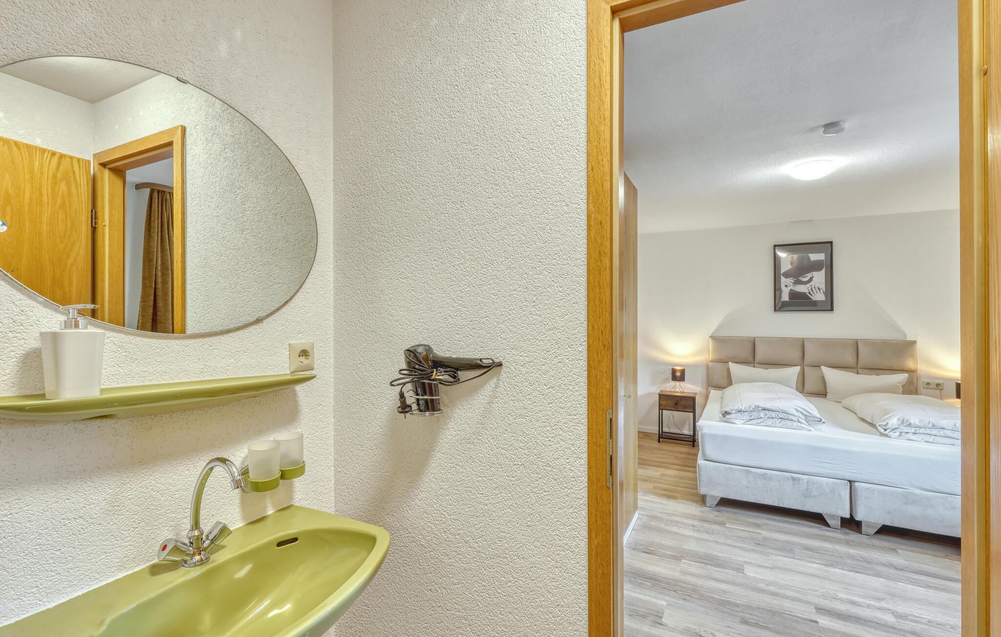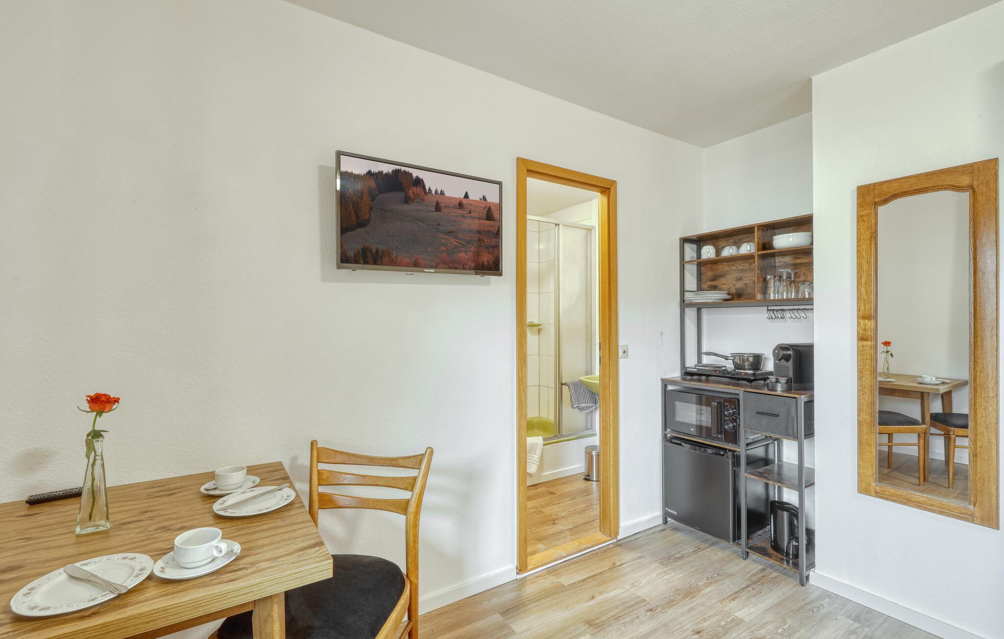 Nyd en afslappende pause for to i denne ferielejlighed nær Bischofsheim. Kom ind og gør jer godt tilpas i den venlige atmosfære. Den rummelige dobbeltseng sikrer afslappende nætter, mens det praktiske tekøkken er ideelt til små måltider eller en hyggelig kop kaffe om eftermiddagen. Afslut dagen med at slappe af med en film eller en god bog og nyd boligens rolige atmosfære.
