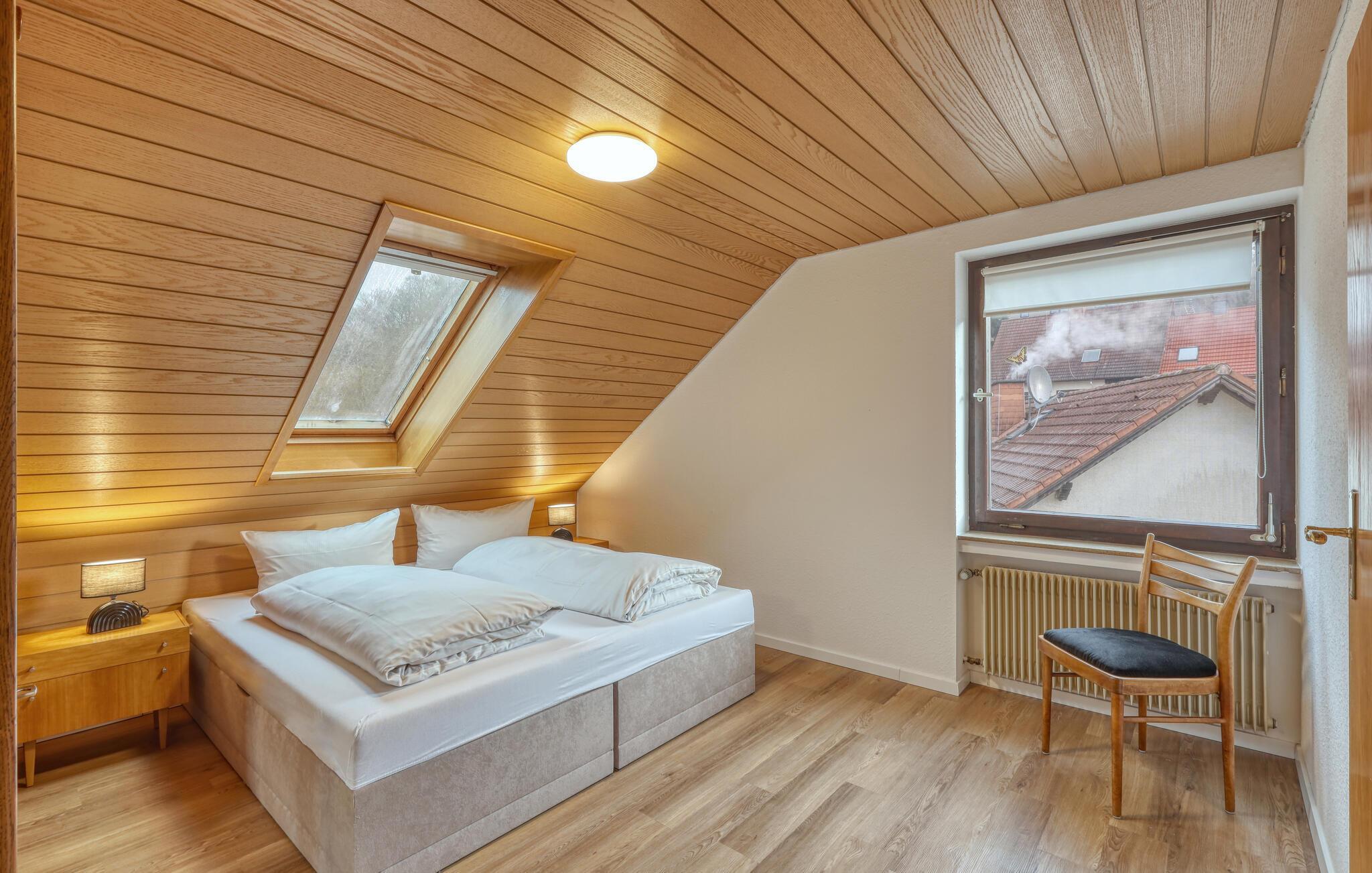 Tilbring nogle afslappende dage i jeres ferielejlighed nær Bischofsheim. Træd ind og føl jer straks hjemme. Lejligheden tilbyder jer komfortable sovepladser og et praktisk udstyret køkken. Tilbered dagens måltider sammen her og forstærk jer med en overdådig morgenmad om morgenen. Den indbydende spiseplads byder på plads nok til socialt samvær. Slap af i hængestolen og afslut feriedagene i sofaen med en god film i en hyggelig atmosfære.