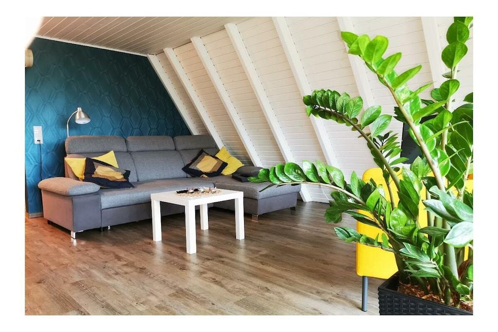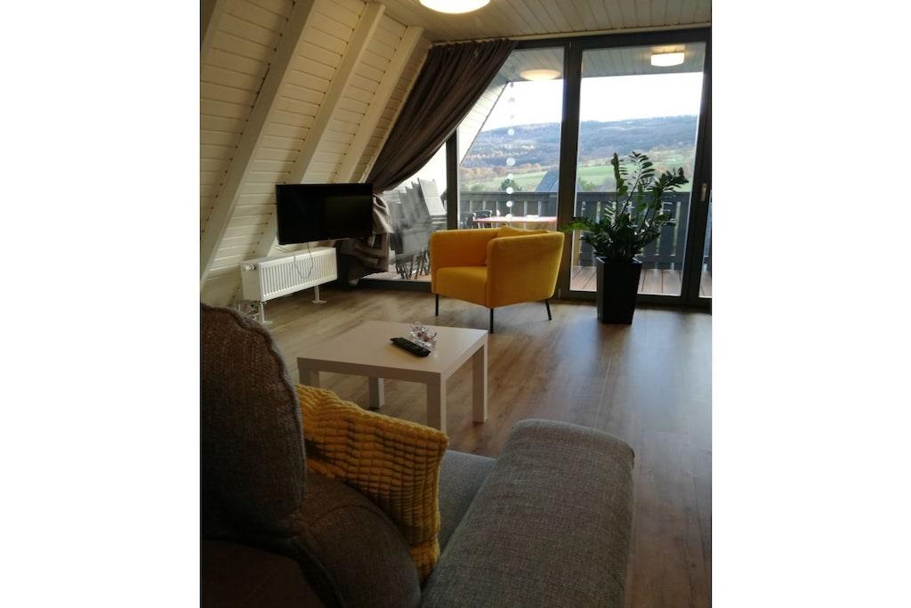 Vores nyrenoverede Sitzmann-feriehus, bygget i elegant loftstil, tilbyder to separate lejligheder. Vi kan rumme op til 8 personer i feriehuset (Lejlighed 1: et soveværelse til 2 personer, andet soveværelse til op til 4 personer / Lejlighed 2: boxmadras til to personer). Huset er moderne indrettet. Lejlighed 1: med overdækket sydvendt altan og nordvendt terrasse. Lejlighed 2: sydvendt terrasse og infrarød kabine. Begge lejligheder har et fuldt udstyret køkken og opvaskemaskine, et badeværelse med bruseniche, og moderne centralvarme sikrer en behagelig atmosfære. Oplev en drømmeferie på det smukkeste sted i Rhön-regionen med direkte udsigt over Frankens hellige bjerg, "Kreuzberg", samt hele Rhön-bjergene og landskabet. For grupper på 5 eller flere voksne skal I booke den anden lejlighed. Bemærk venligst: prisen for den anden lejlighed kommer i tillæg! Pris for to personer: EURO92, hver ekstra person EURO20, rengøringsgebyr EURO60