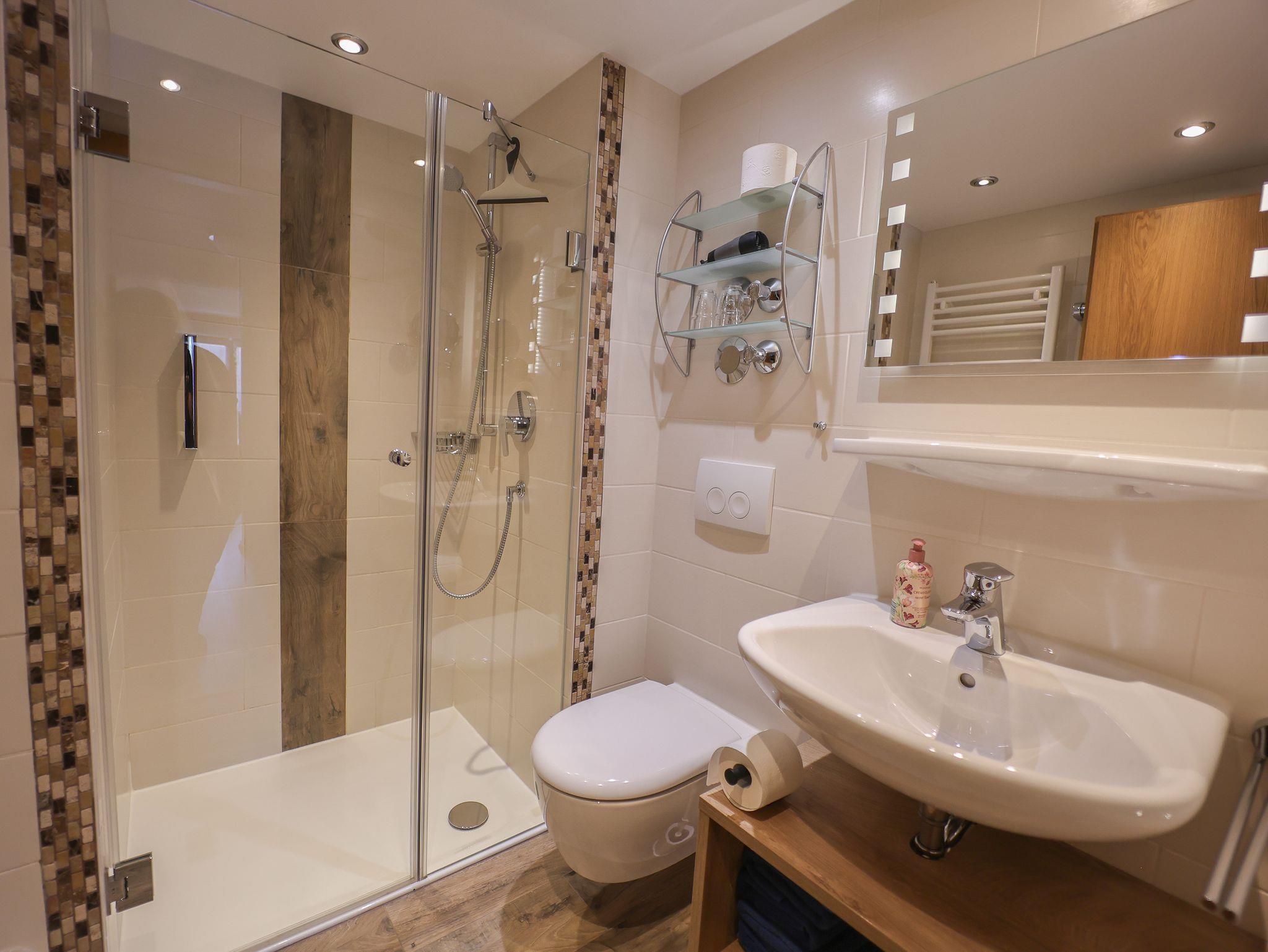 Moderne Ferienwohnungen (ein zusätzliches Doppelzimmer zubuchbar) mit Dusche, WC, Balkon oder Terrasse mit Alpenpanorama, komfortable Ausstattung und familiäre Atmosphäre.