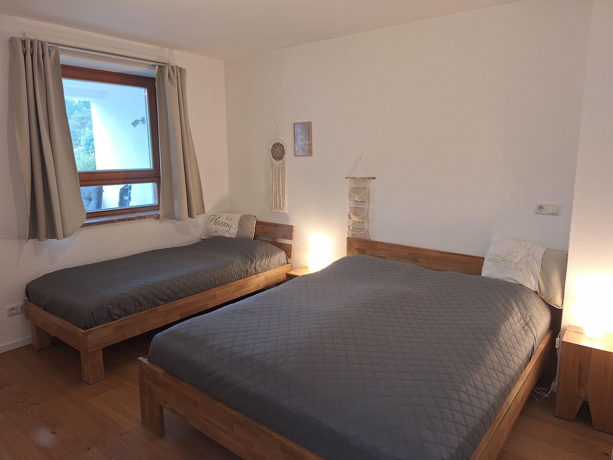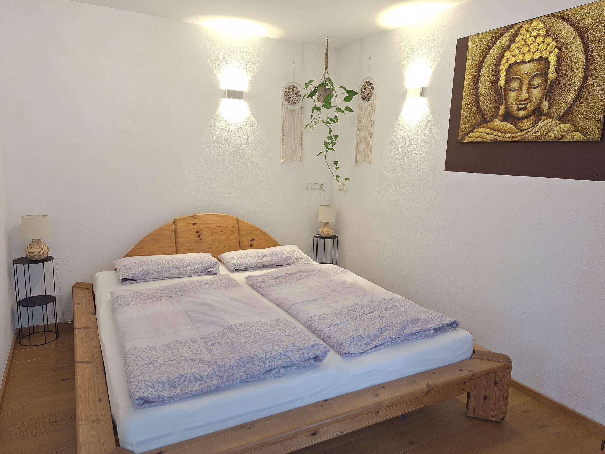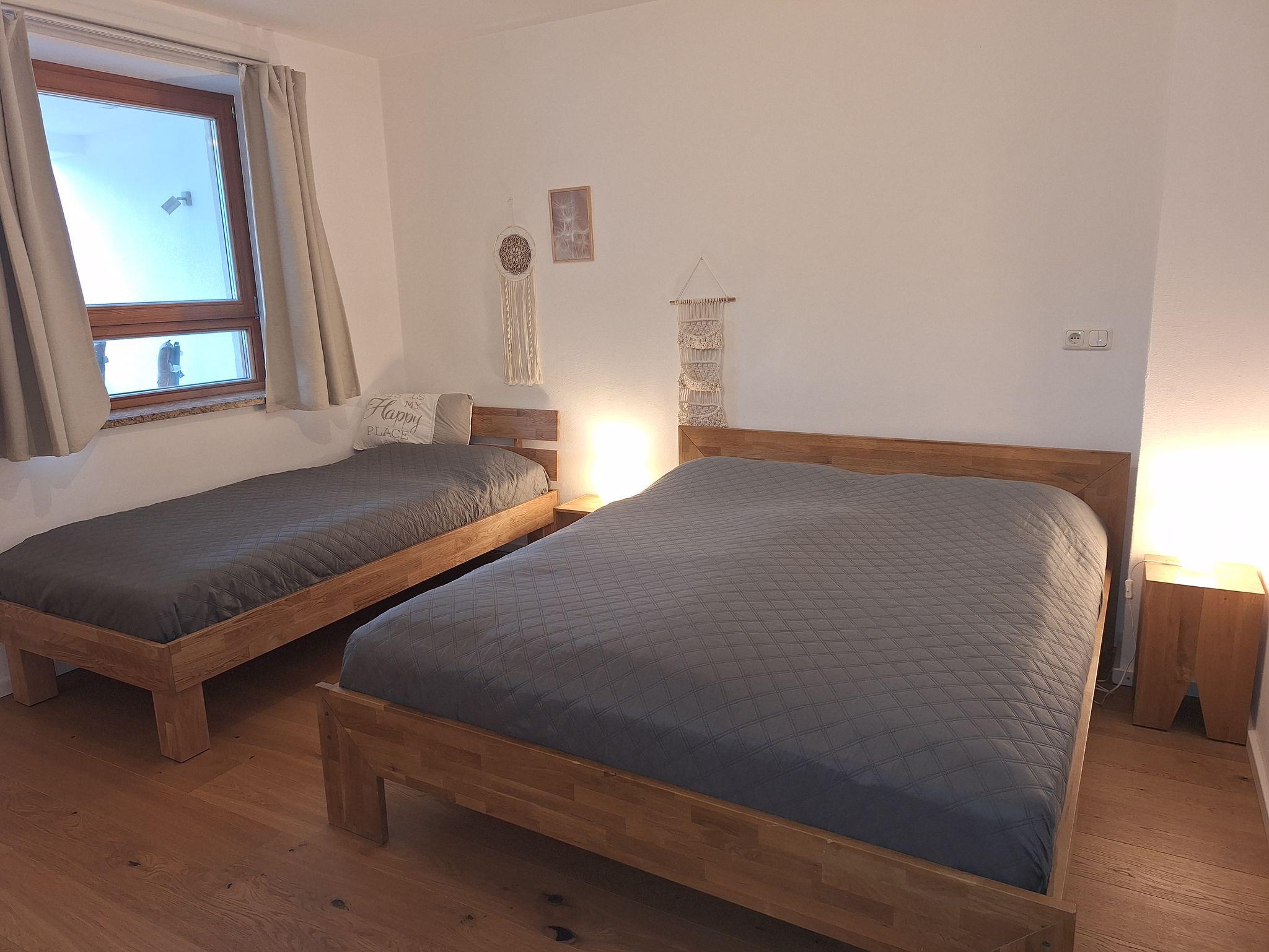 Die Ferienwohnung Untersberg im Haus Sternblick in Bischofswiesen ist geeignet für bis zu 5 Personen. Sie verfügt über ein Schlafzimmer mit Doppelbett(181x210cm) und ein weiteres Schlafzimmer mit Doppelbett und Einzelbett für weitere 3 Personen, ein großes Wohnzimmer mit Zugang zum Balkon, einer Küche und einem Bad mit Badewanne und WC, sowie WLAN. Genießen Sie die Nachmittage und Abende auf Ihrem überdachter Balkon mit Blick auf den Watzmann und das Lattengebirge. Die Ferienwohnung verfügt über einen seperaten Eingang auf der Waldrandseite. Die ruhige Waldrandlage wird zu Ihrem Urlaubsgefühl beitragen.