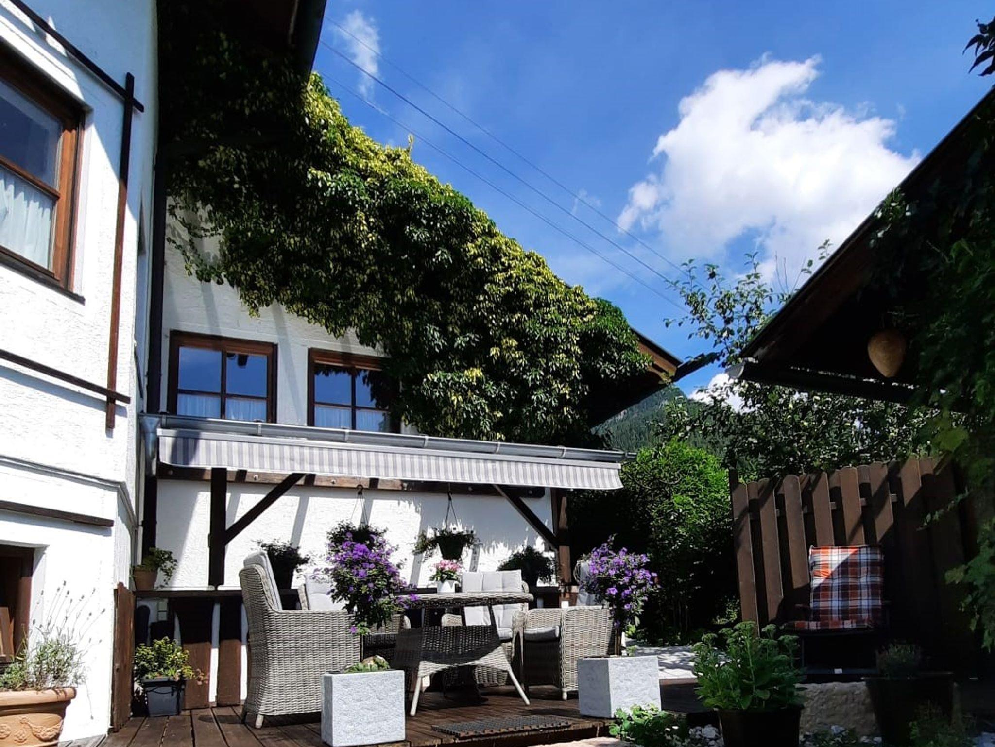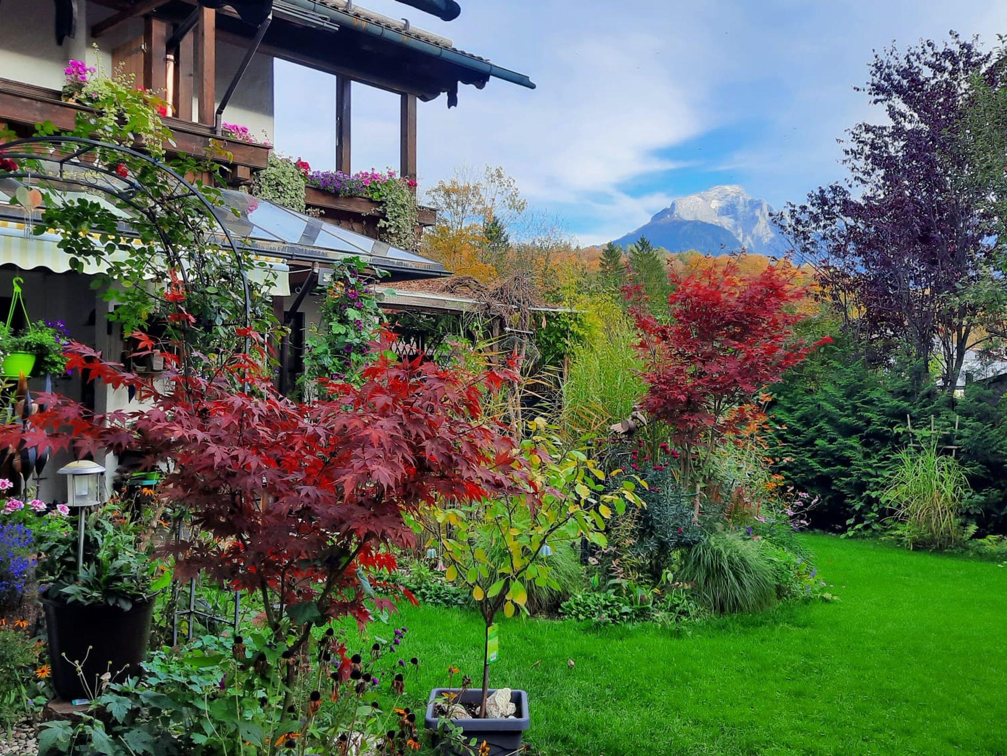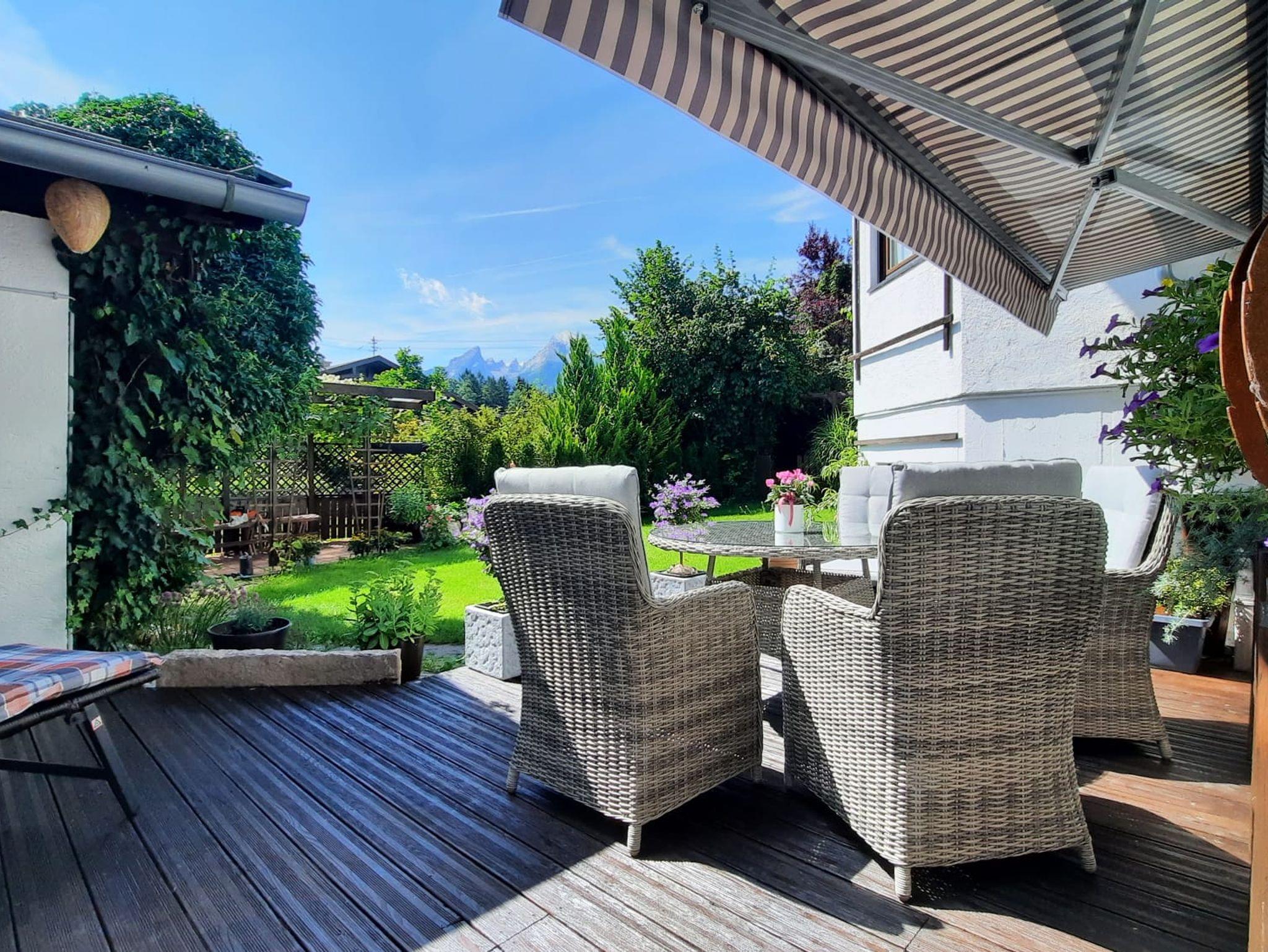 Landhaus mit vielen liebevollen Details und herrlichem Bergblick. Für gemütliche Stunden im Freien steht Ihnen eine große Terrasse mit elektrisch verfahrbaren Sonnenschutz und Gartenmöbeln mit Sitzkissen zur Verfügung. Auf der Liegewiese können Sie auf Gartenliegen den herrlichen Blick auf den Watzmann und die umliegende Bergwelt genießen.