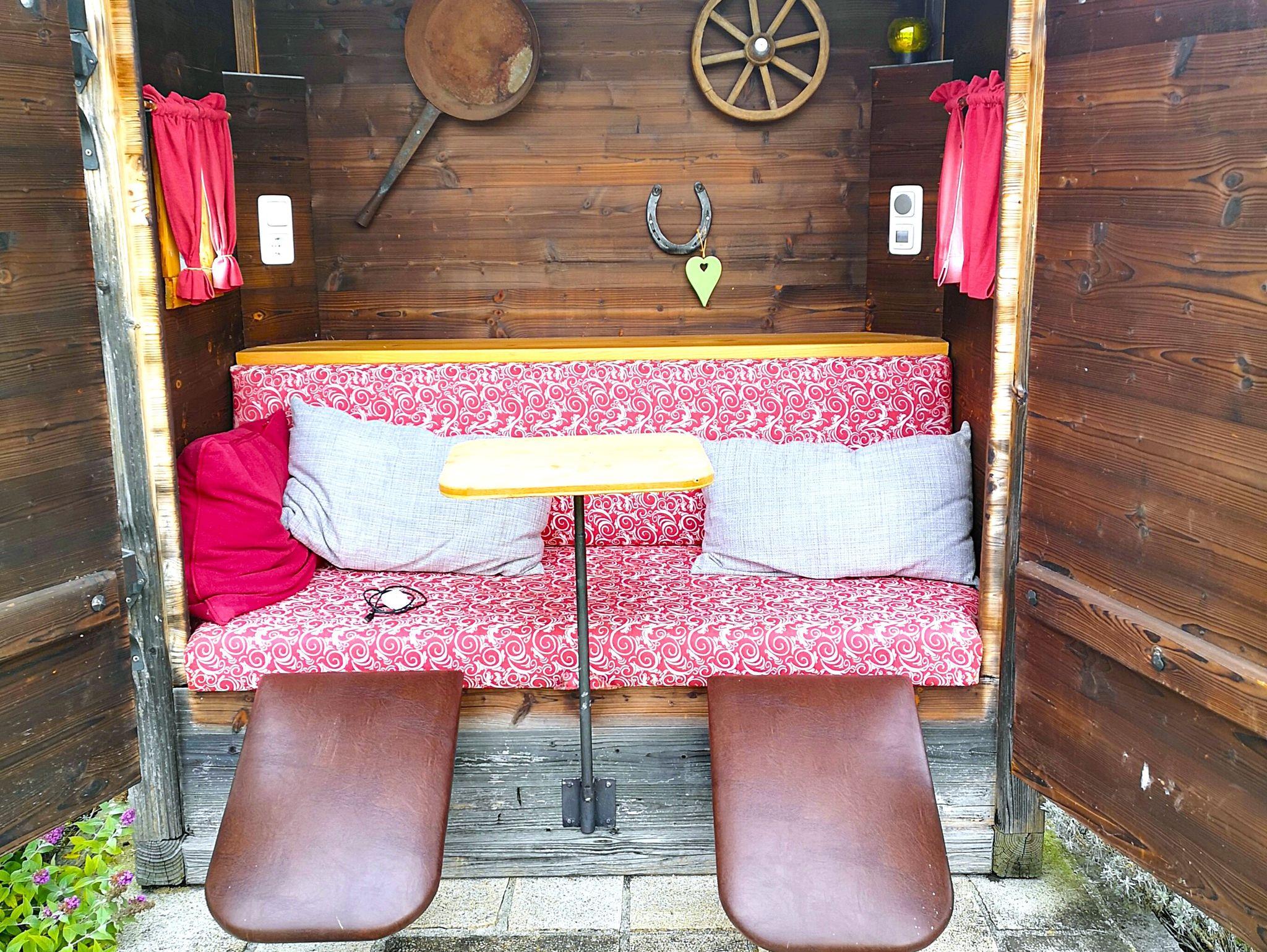 Die 35 m² große Nichtraucher-Ferienwohnungen bieten Platz für 2 Personen und bestehen jeweils aus: einem Wohnbereich mit Esstisch, Stühlen, Eckbank, Couch, SAT-TV, Bücher und Spiele einem separaten Schlafzimmern mit Doppelbett, Nachtkästchen, Schrank und einer vollständig ausgestatteten Küche mit Spülmaschine, 4-Platten-Herd, Kühlschrank mit Gefrierfach, Toaster, Eierkocher, Kaffeemaschine, Wasserkocher, Espressomaschine und ausreichend Geschirr und Besteck einem Bad mit Dusche und WC, Kosmetikspiegel, Haartrockner, Außenfenster und einer Terrasse mit einer Sitzgruppe aus Holz, Sitzauflagen, Sonnenliegen, Sonnenschirm und Wäscheständer.