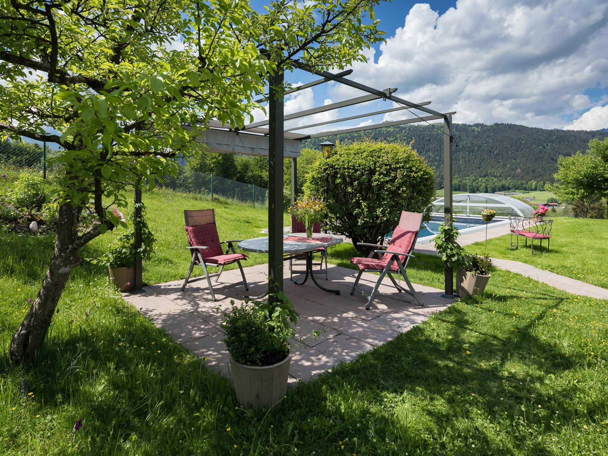 Unser ganztägig sonniges Paradies liegt völlig ruhig. Voll eingerichtete Gästeküche, großer Nichtraucher-Frühstücksraum, großer Parkplatz am Haus. Ihnen stehen 2 E-Tankstellen und 3 E-Ladestationen für Fahrräder zur verfügung. Unseren Strom und Warmwasser produzieren wir selbt mit PV-Anlage und Solar. Großer Garten mit Liegewiese, Liegen mit Auflage, beheiztes Freibad, kleiner Spielplatz, Tischtennisplatte, Grill. Im Haus ist das Rauchen nicht erlaubt - aber am Balkon dürfen Sie rauchen.Winter: Beheizter Schuh-/Skiraum, Sauna, Langlaufloipe am Haus, Langlauf- und Wanderzentrum Aschauerweiher mit Schlittschuhplatz, Eisstockschießen nur 5 Minuten vom Haus. Alle Betten haben Komforthöhe. In einigen Zimmer können wir Betten in Überlänge (2,20m) anbieten.