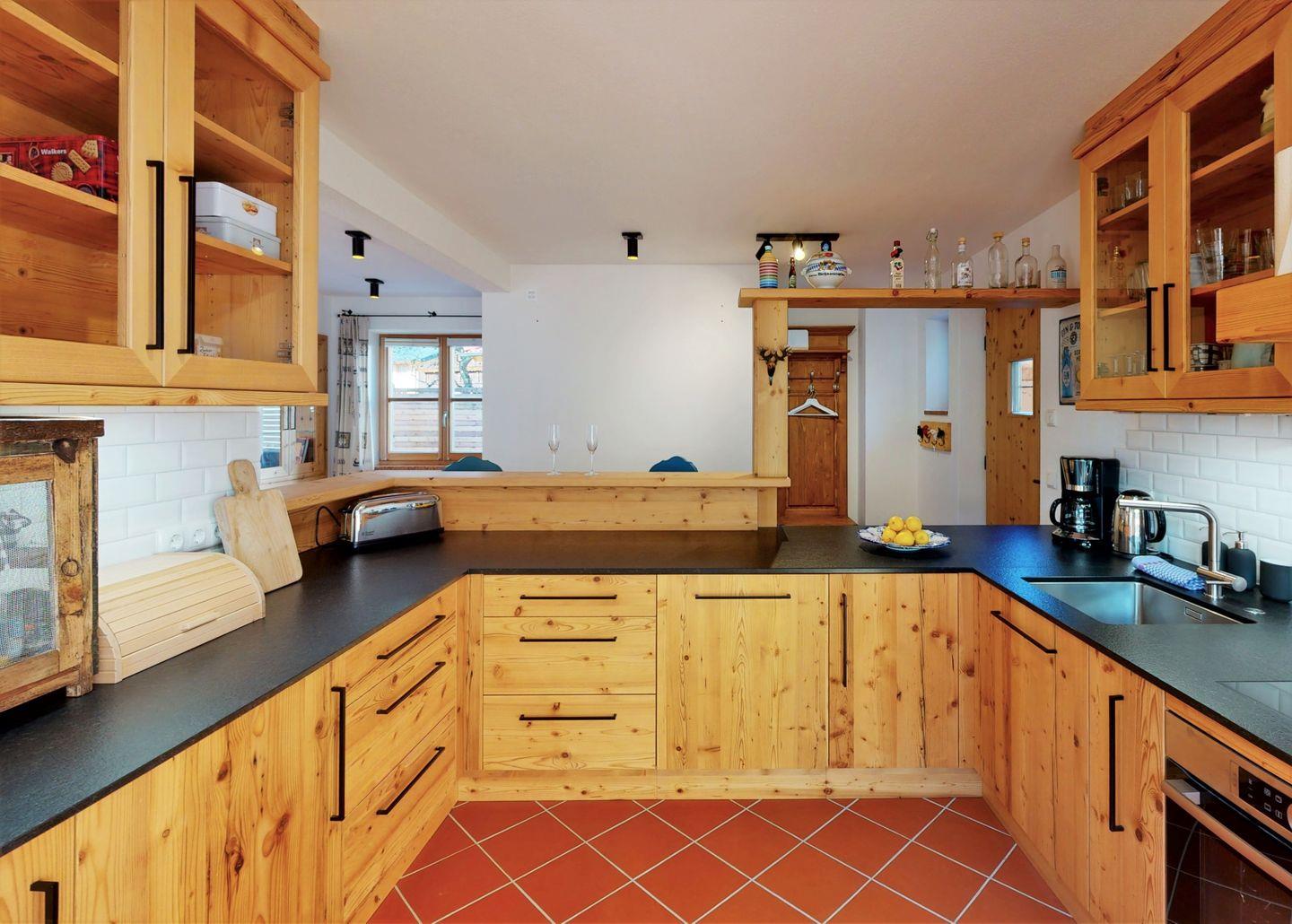 Der großzügige Wohnbereich mit Kaminofen lädt zu geselligen Abenden ein und sorgt für eine behagliche Atmosphäre. Hier können Sie auf der Sofaecke entspannen. Die voll ausgestattete Küche mit Herd, Backofen, Mikrowelle und Geschirrspüler ist ideal, um kulinarische Köstlichkeiten zuzubereiten. Ein Essbereich bietet genügend Platz für gemeinsame Mahlzeiten und gesellige Spieleabende.