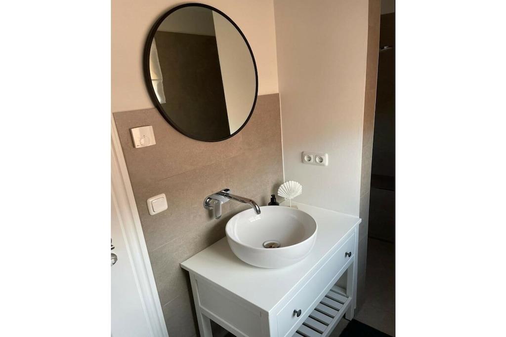 Huset har to soveværelser og to badeværelser. Det ene badeværelse ligger i stueetagen og det andet på første sal. Der er også et toilet med en lille håndvask på første sal. Huset er nyligt og moderne indrettet.