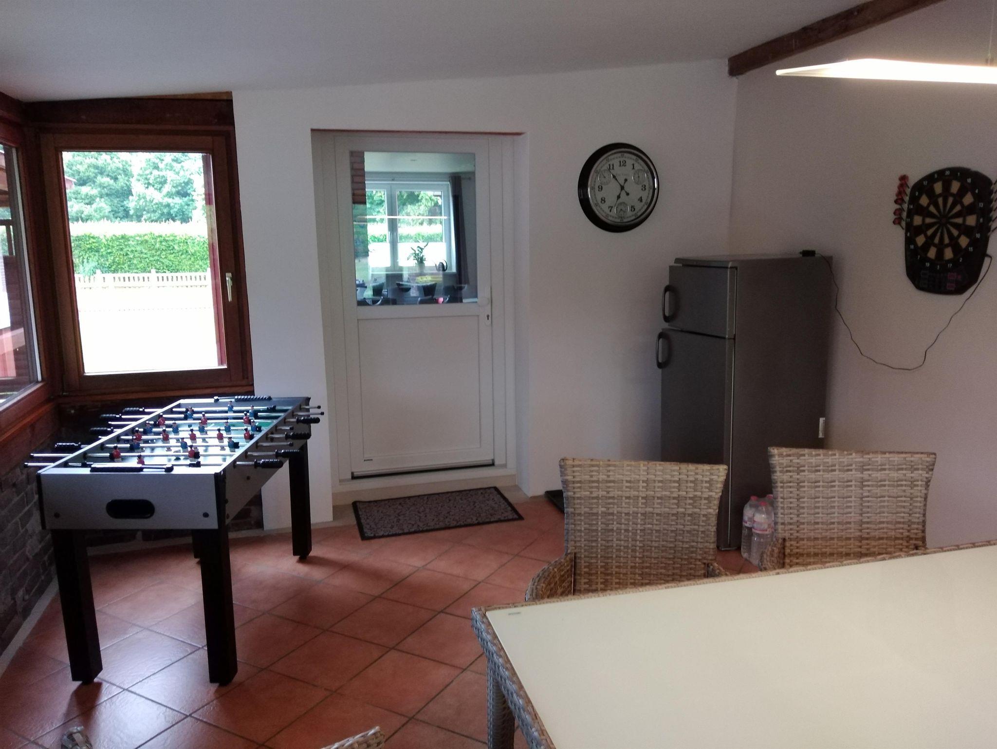 Als zusätzlicher Aufenthaltsraum steht ein Wintergarten mit Sitzecke, Dartscheibe und Kicker zur Verfügung.