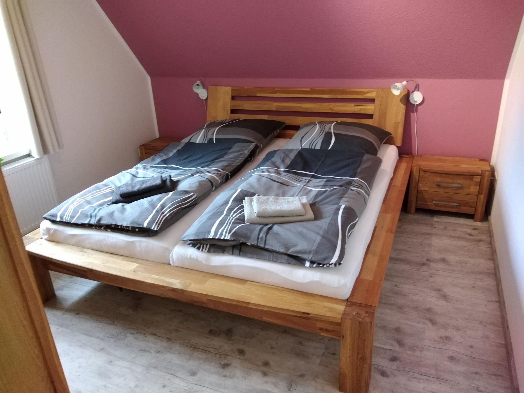 In dem Haus befinden sich auf 2 Etagen 3 Schlafzimmer mit jeweils einem Doppelbett 180 x 200 cm.