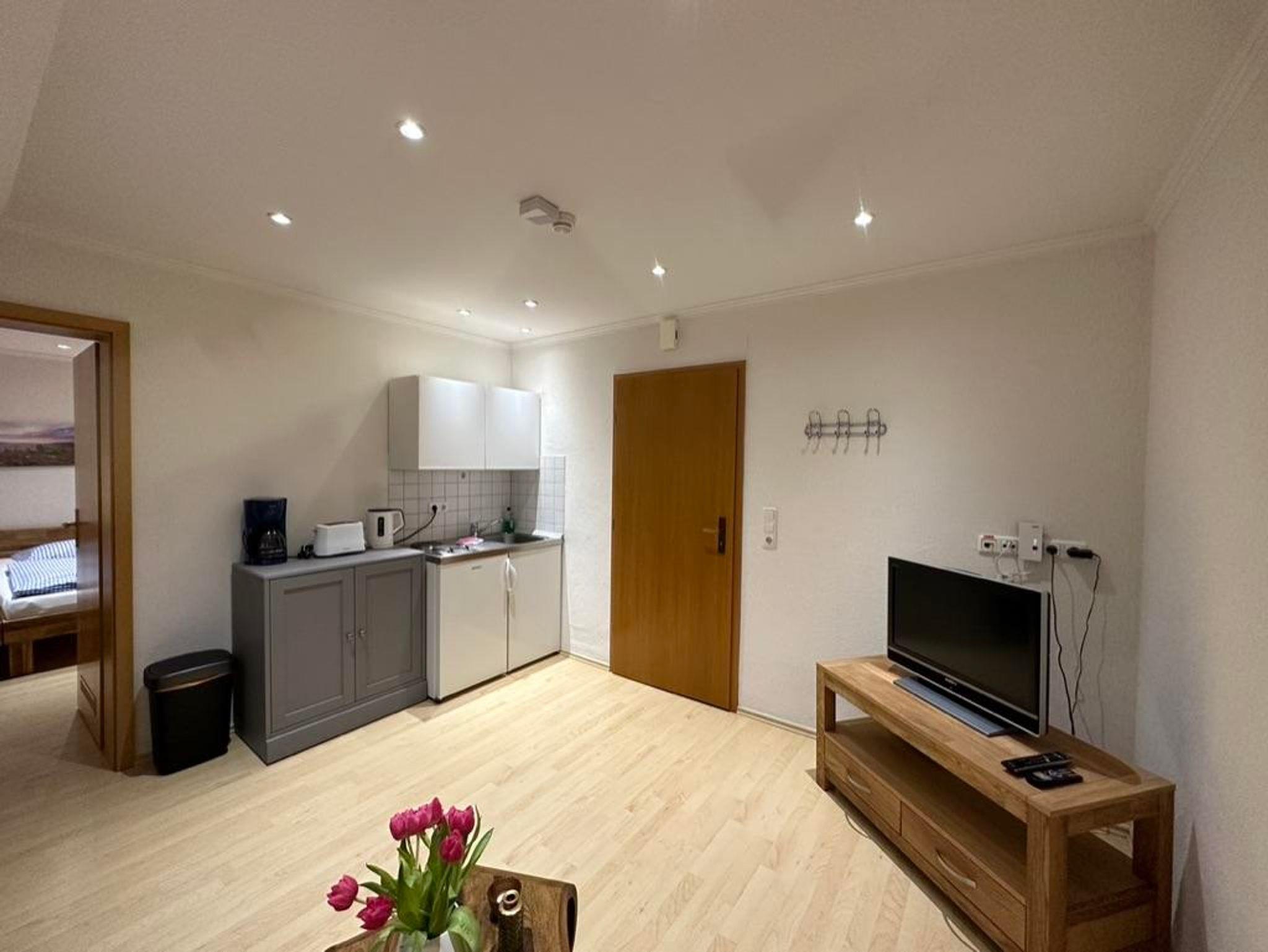 Wohnung 9 35 qm, 1 Wohnz. m. Kleinküche, 1 Schlafz. mit 2 getr. Betten, Bad mit Dusche und WC