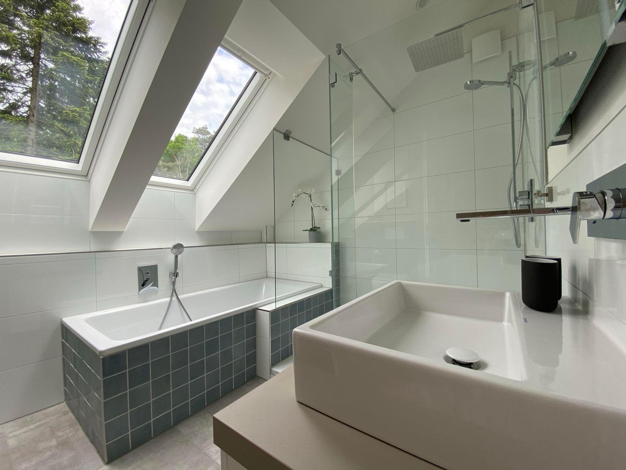 Die Wohnung hat 2 Schlafzimmer, wobei das große Zimmer mit einem Doppelbett und das kleinere mit 2 Einzelbetten ausgestattet ist. Ein Reisebett für Kleinkinder ist vorhanden. Die Fenster der Schlafzimmer sind alle mit elektrischen Außenrollos ausgestattet – die Veluxfenster im kleineren Schlafzimmer mit manuell bedienbaren Innenrollos. Das Badezimmer bietet neben WC und Waschtisch eine begehbare Dusche und eine Badewanne.