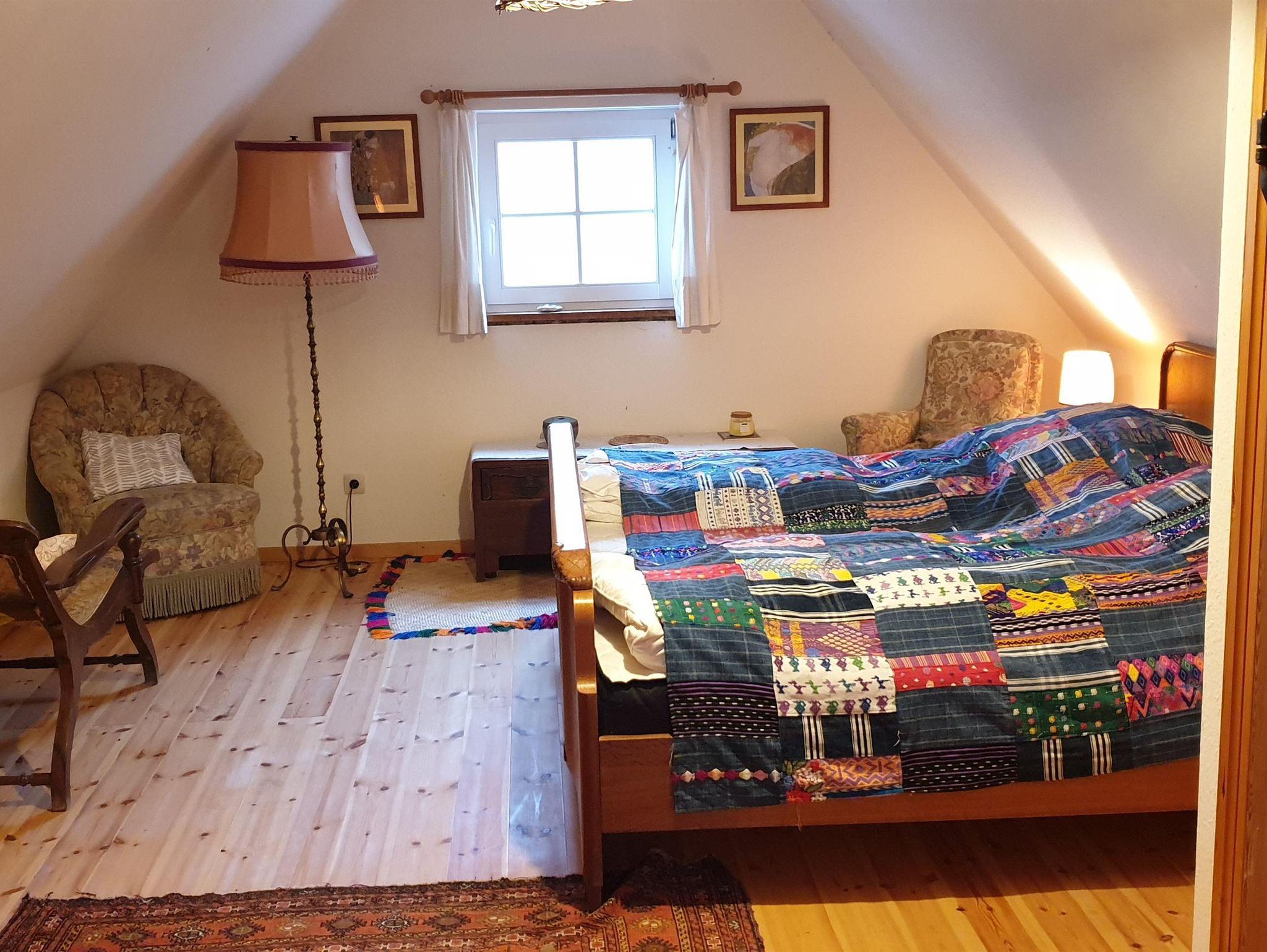 Über eine Außentreppe (nicht barrierefrei) erreicht man das große Schlafzimmer mit zusätzlicher Toilette im Obergeschoss.