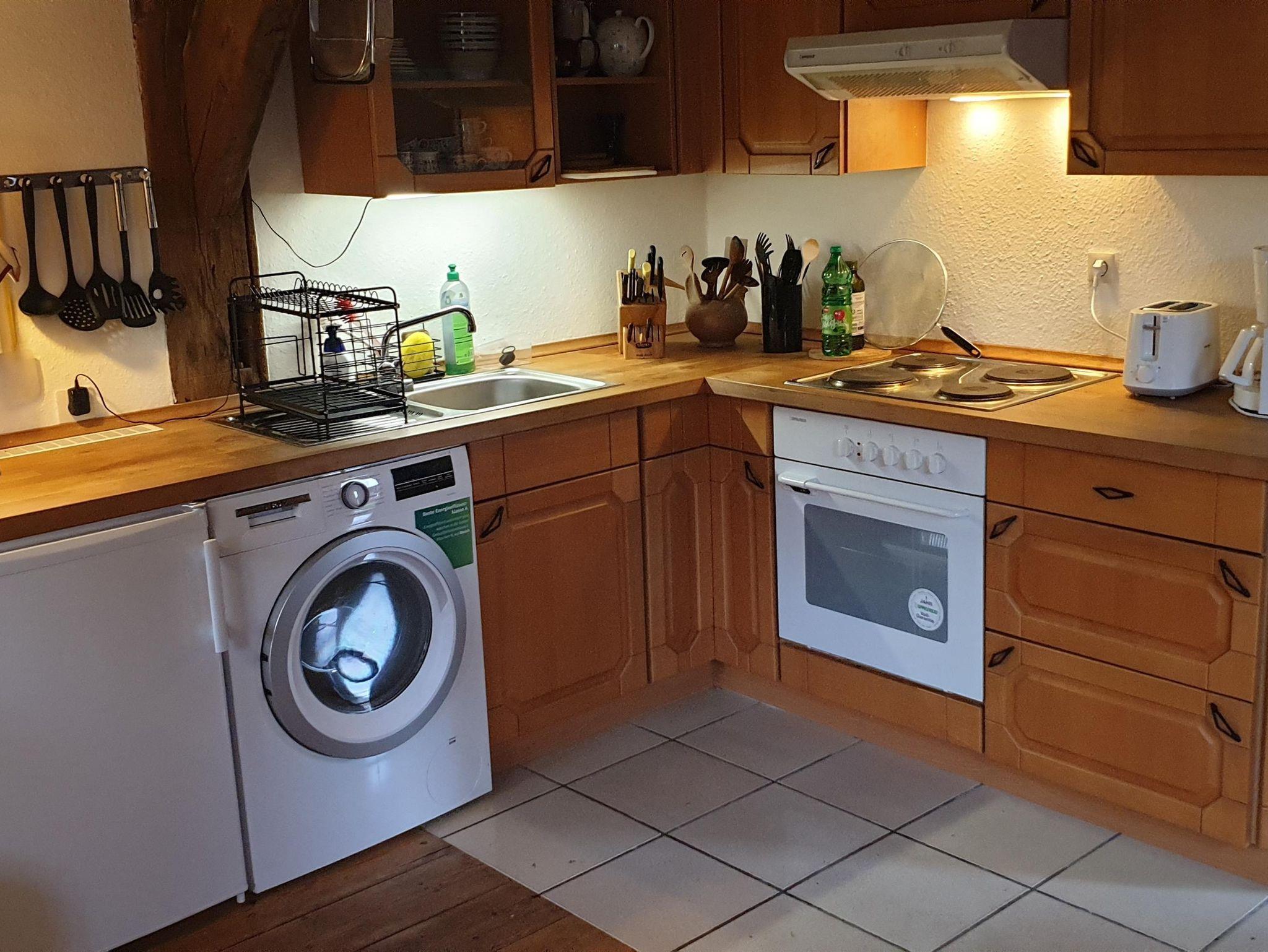 Im Erdgeschoss befindet sich eine große Wohnküche sowie ein Badezimmer mit Dusche.