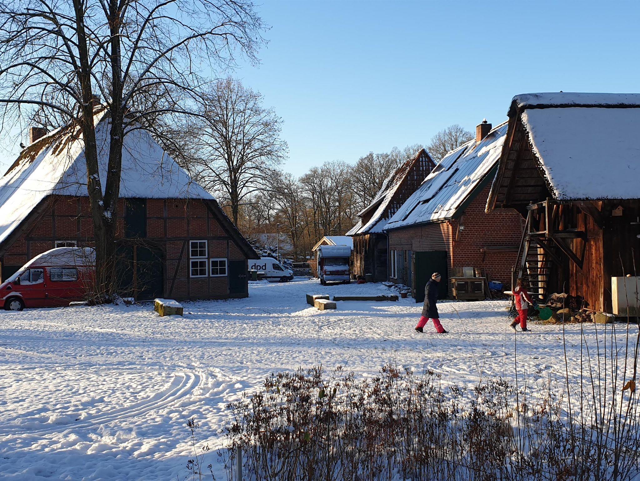 Geparkt werden kann direkt am Treppenspeicher auf dem kopfsteingepflasterten Hofplatz.
