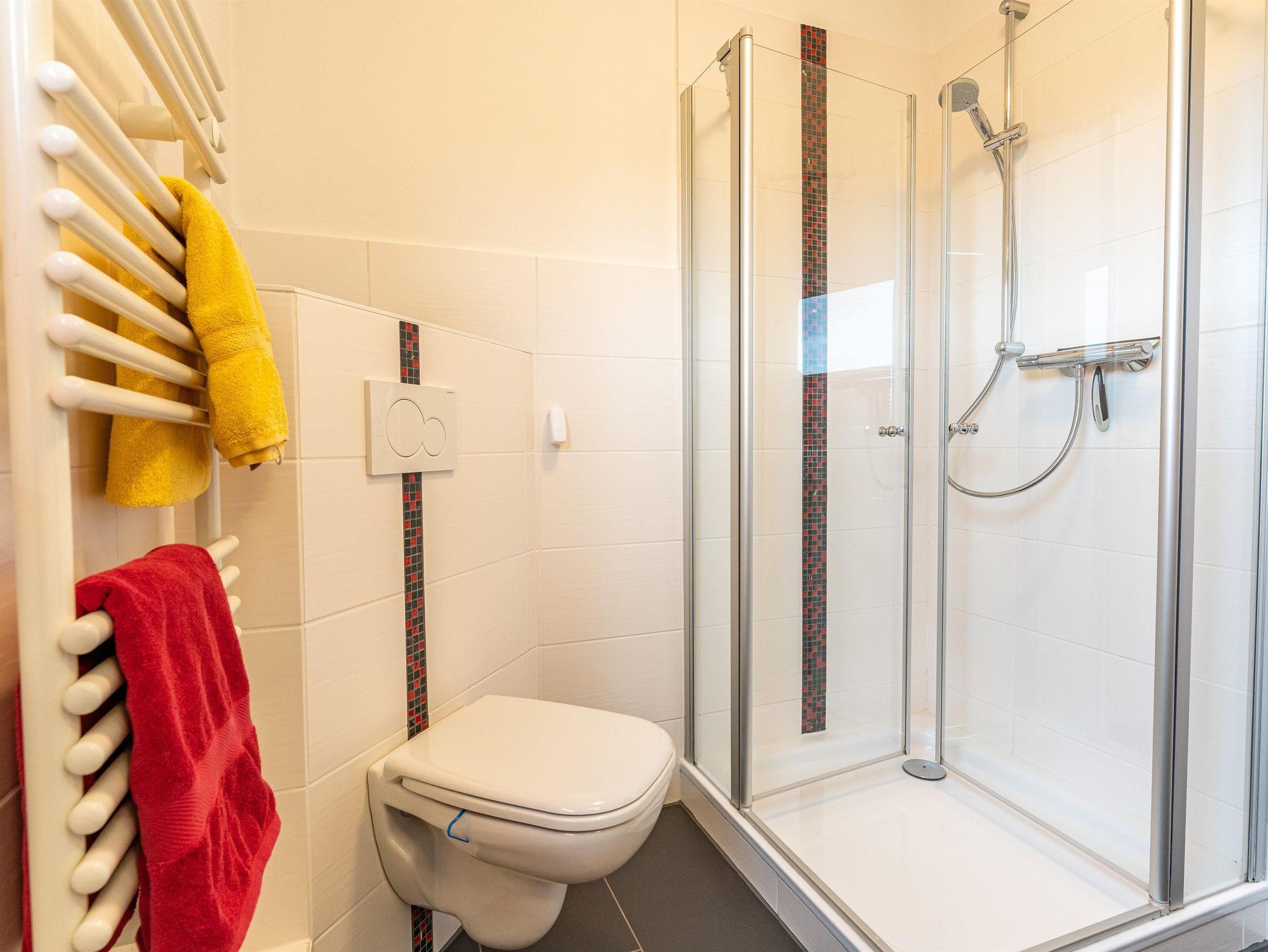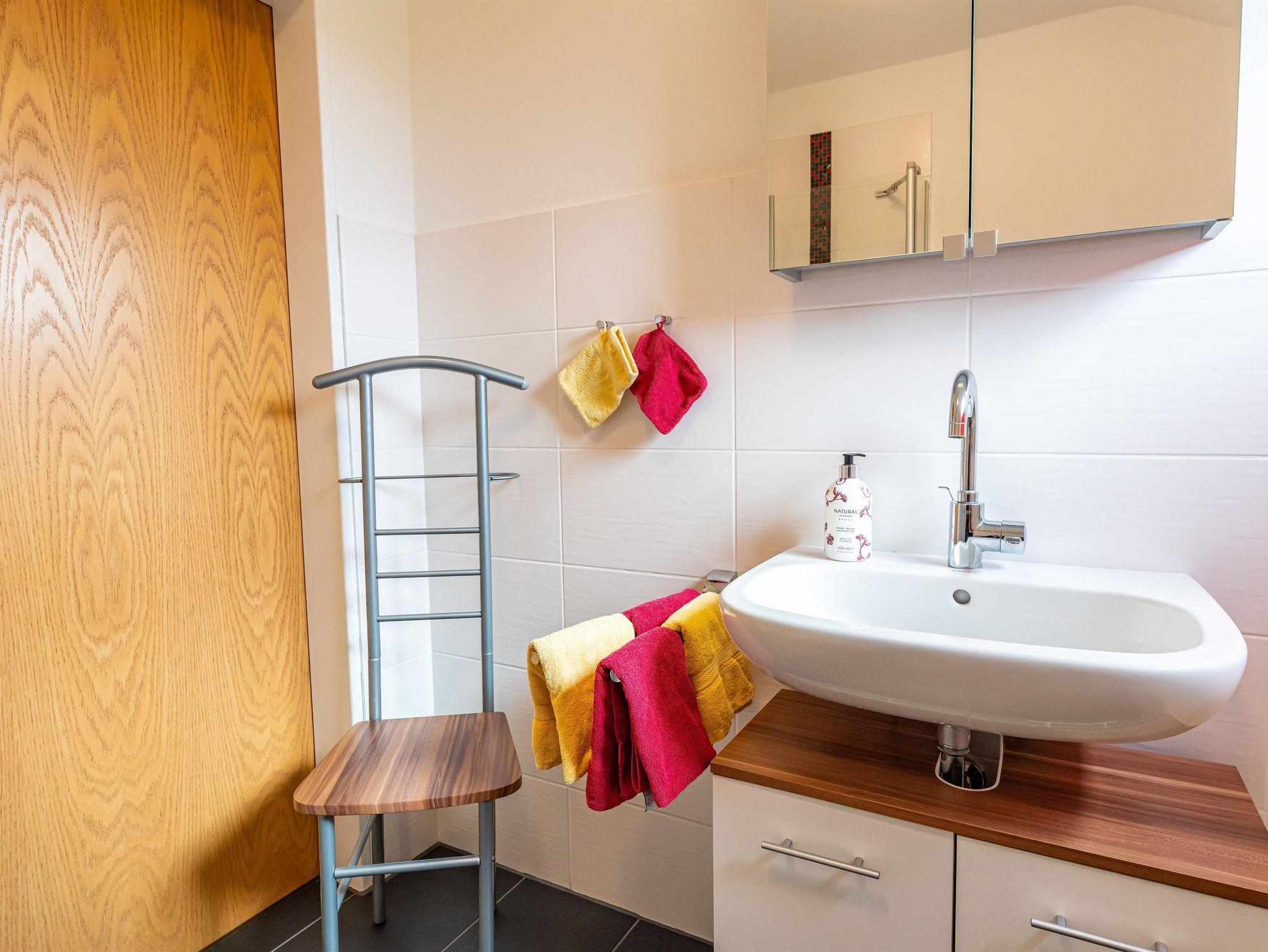 Schlafsofa mit Federkern. Das neue, exclusive Badezimmer ist mit drei Schritten über den Flur zu erreichen.