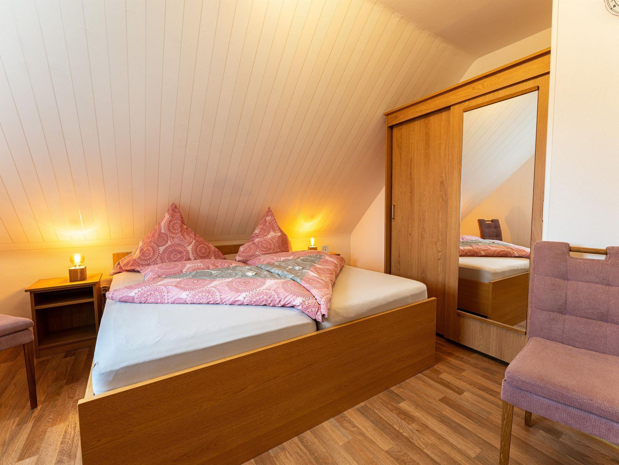 Unser Mohnzimmer ist besonders geräumig und eignet sich damit hervorragend für einen längeren Aufenthalt in der Lüneburger Heide. Das Zimmer liegt im Obergeschoss und verfügt über viel Platz, eine gemütliche Sitzecke und ein