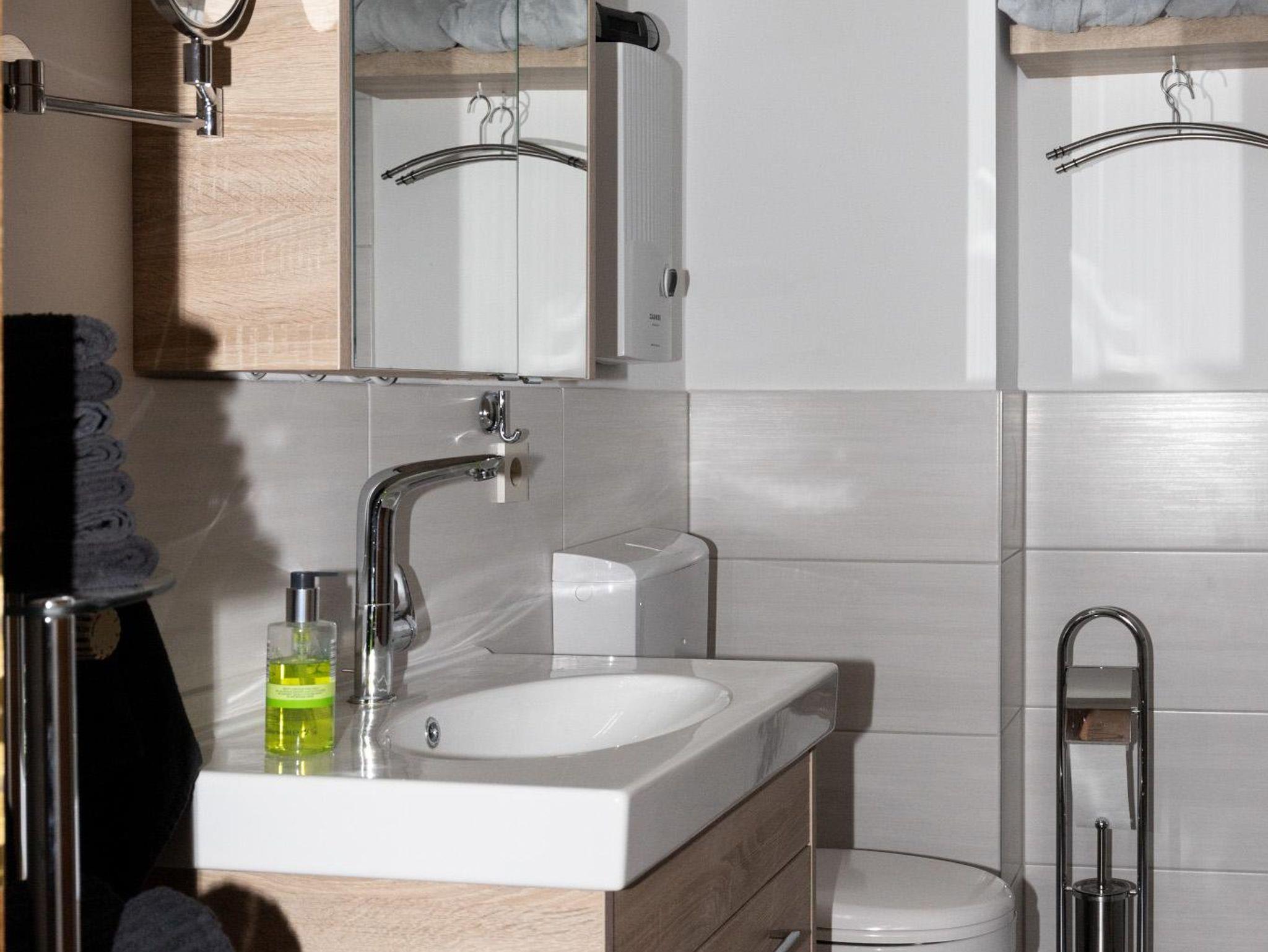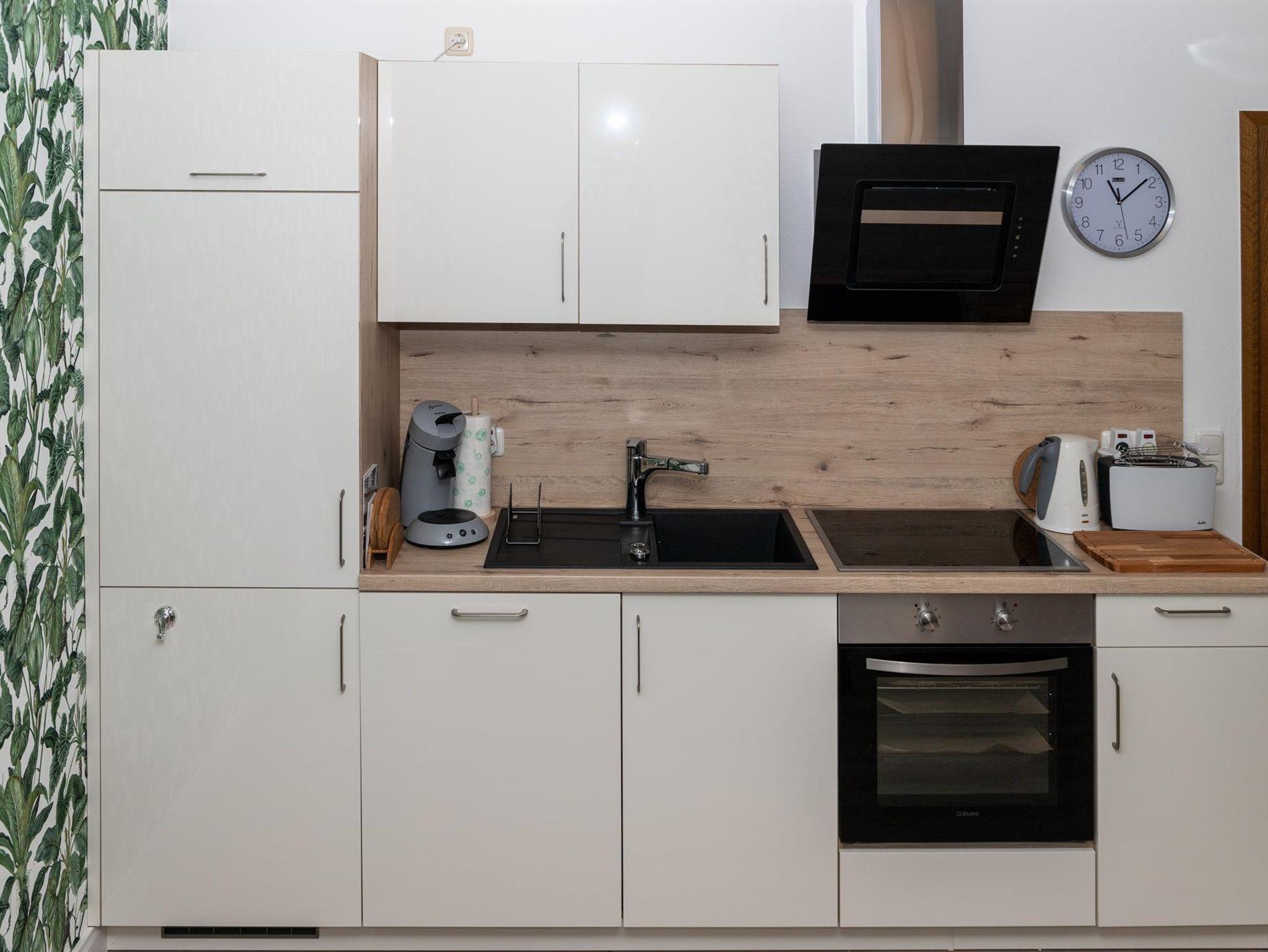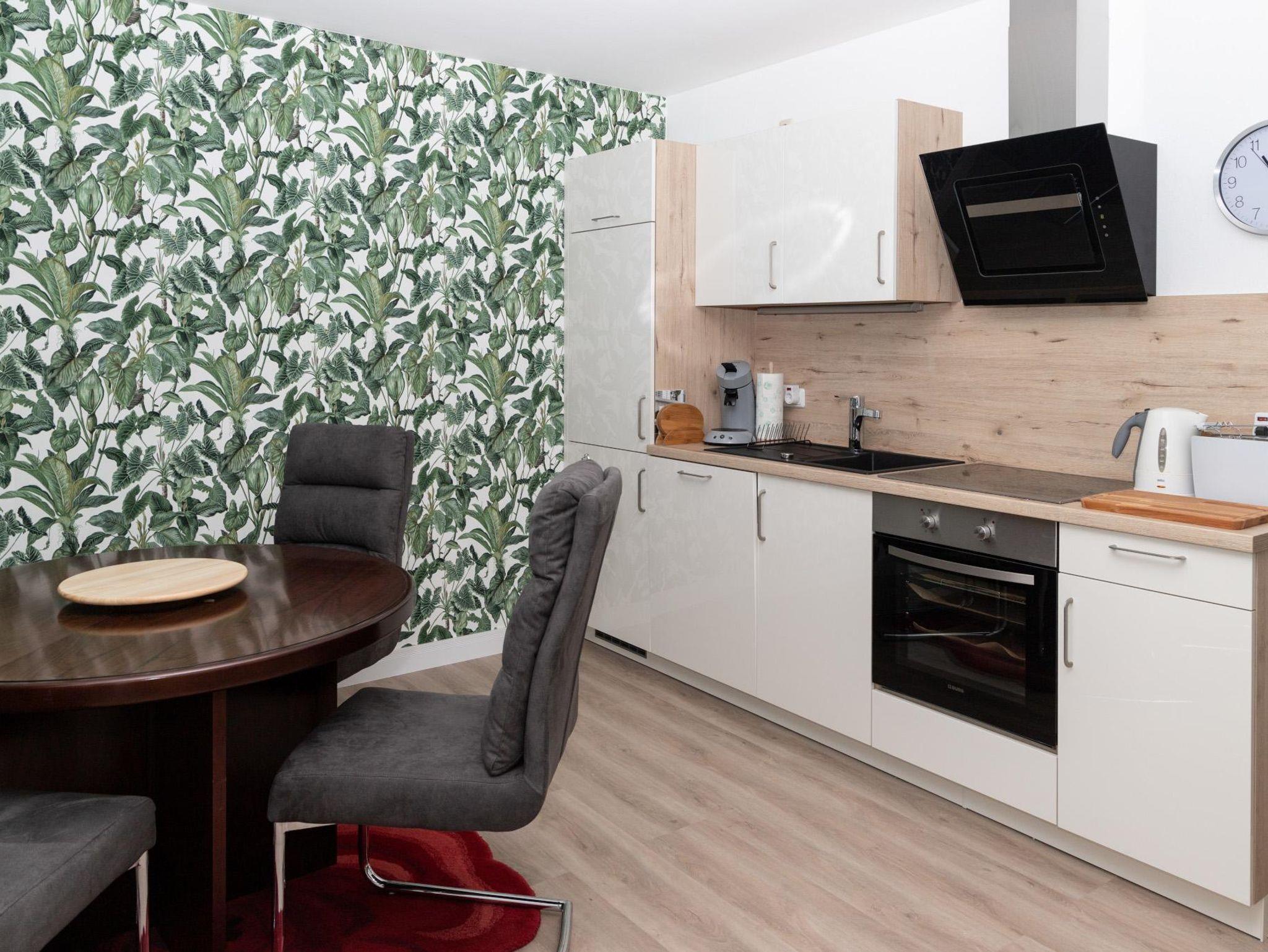 Ein modernes neues 2 Raum-Appartement mit neu gestaltetem Bad. Dieses Nichtraucher-Appartement mit seinen 50,28 qm hat eine Wohnküche (komplett neue Einbauküche mit Spülmaschine…), ein Wohn- Schlafraum und ein neues Bad mit begehbarer Regendusche. Ein kleiner Balkon (in den Sommermonaten mit Tisch und Stühlen) erlauben ein Frühstück an der frischen Luft. Auf dem Balkon ist das Rauchen natürlich erlaubt. Ideal für 2 Erwachsene und 2 Kinder oder Jugendliche oder 3 maximal 4 Erwachsene. Im Appartement sind 1 Kingsize Boxspringbett (1,80 m x 2,00 m), 1 Doppelschlafsofa (1,40 m x 1,90 m) im Wohn-Schlafraum und 1 Doppelschlafsofa (1,34 x 1,90 m) in der Wohnküche. Siehe detaillierte Abbildungen bei den Bildern des Appartements. Das Appartement bietet ausreichend Platz für ein Kinderbettchen (auf Anfrage).