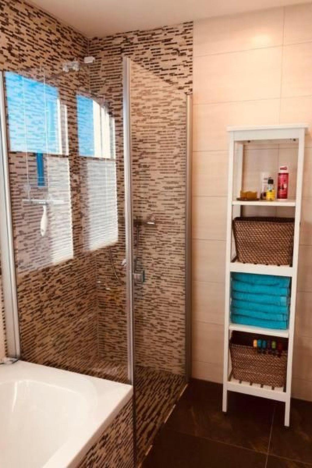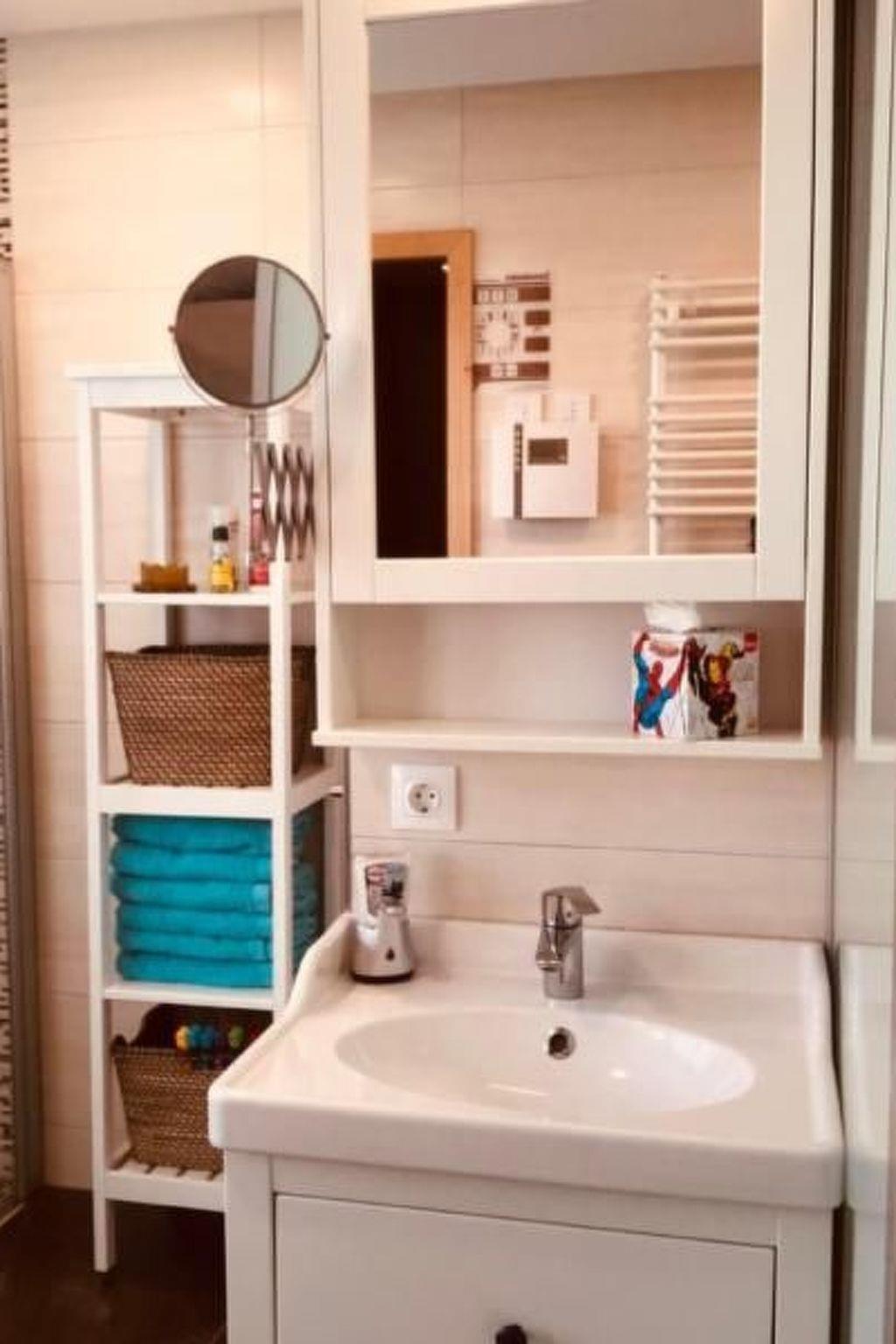 The large, modern tiled bathroom with XL shower cubicle, bathtub with a view of the lake, washbasin and separate WC cubicle offers every conceivable comfort. The Finnish sauna has a mirrored window with a marvellous view of the water.