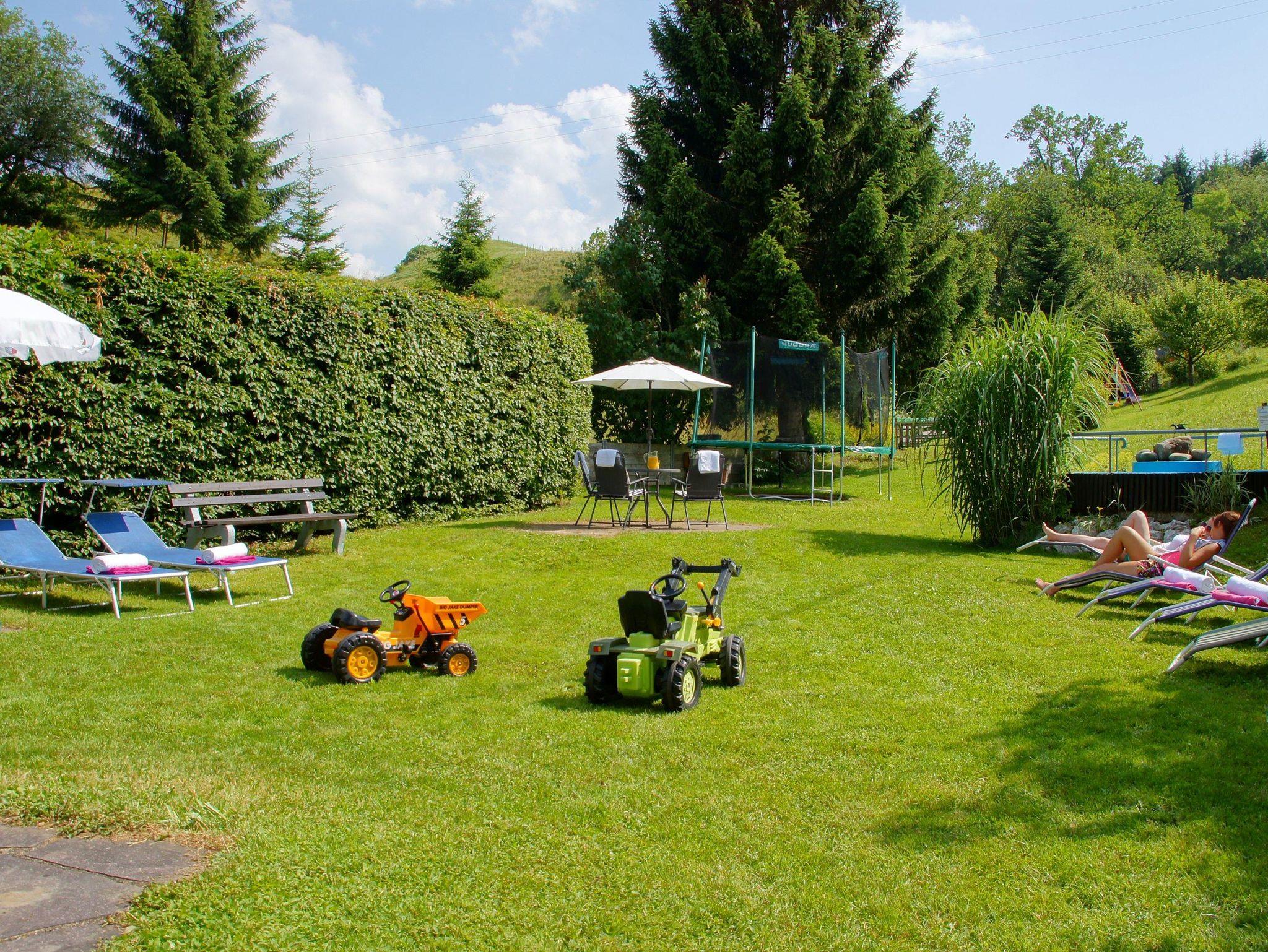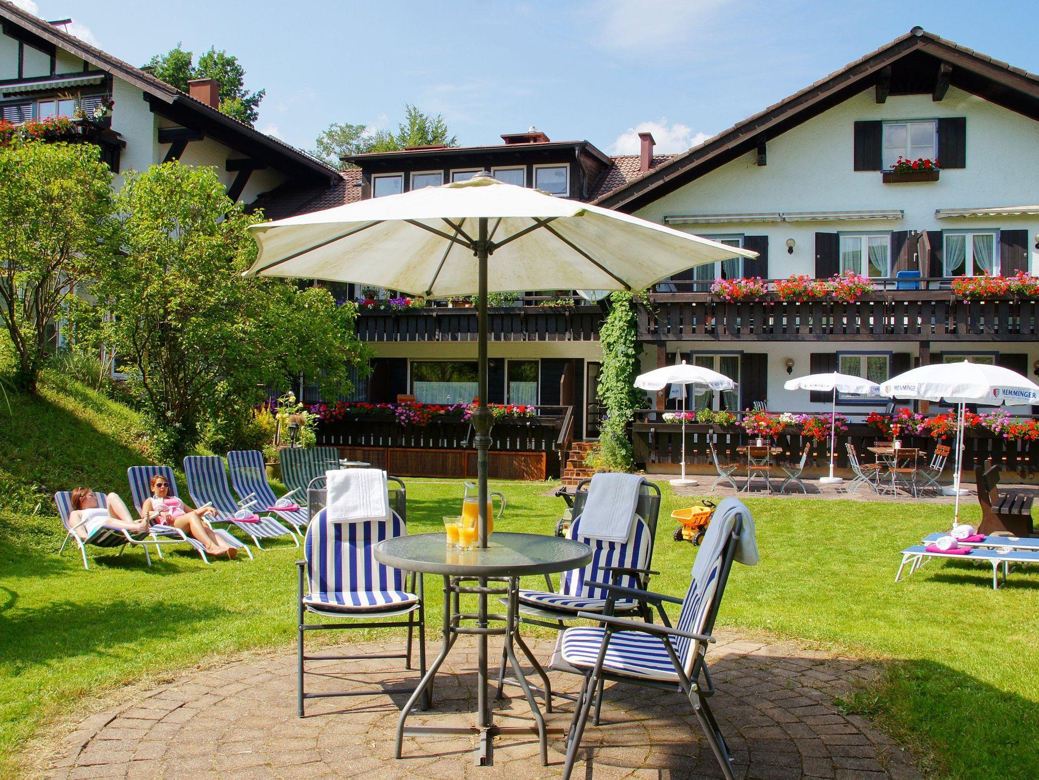 Die verkehrsgünstige und doch ruhige Lage, der freie Blick in die Berge, die weitläufige Spiel- und Liegewiese mit u.a. Tretbecken und Trampolin, die geschützte Gartenterrasse, die Wellness-Ecke mit Sauna und Physiotherm Wohlfühloase sind gute Argumente für einen Urlaub bei uns.