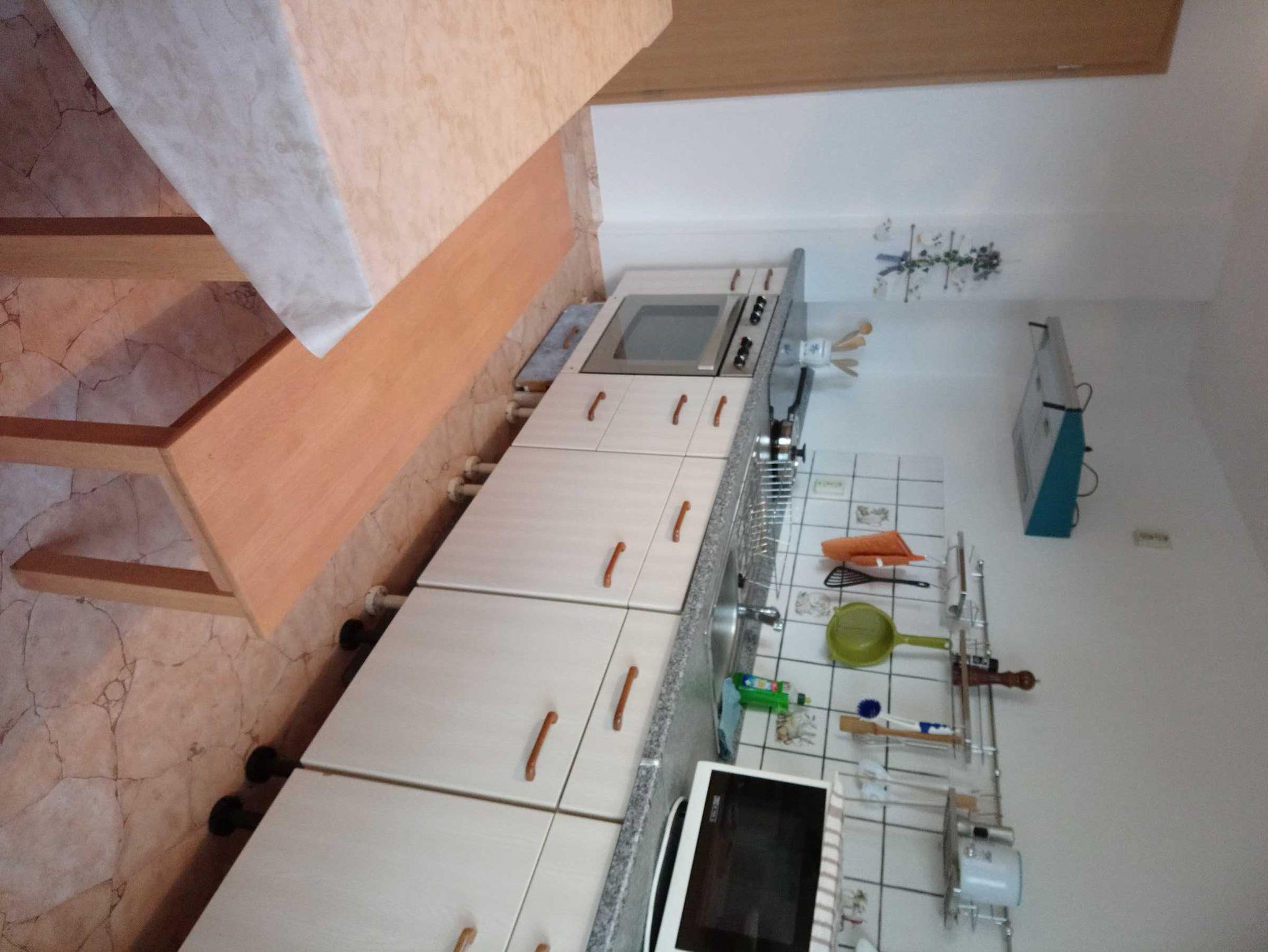Die Toilette ist separat, eine große Küche mit eigener Terrasse mit Sitzmöglichkeiten ist vorhanden.