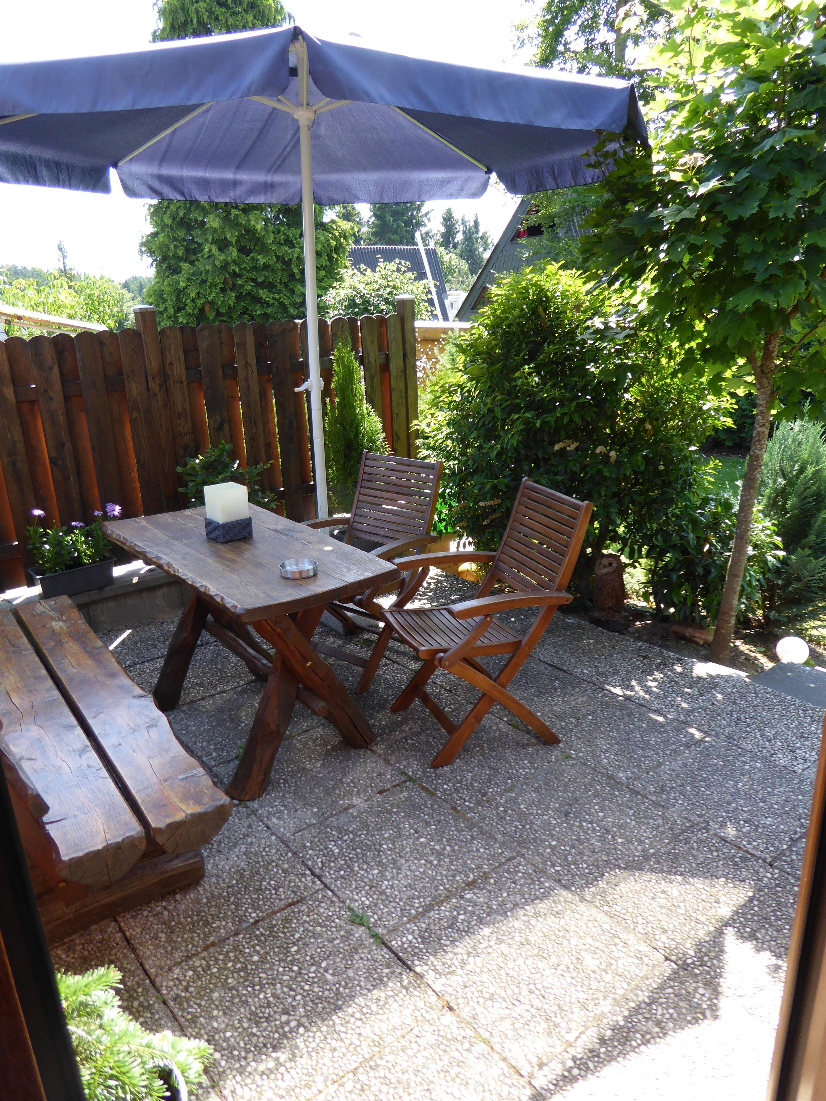 Für den abendlichen Schlummertrunk ist die schöne Terrasse ideal. In der Unterkunft finden Sie neben einem Kühlschrank auch eine Mikrowelle und eine Kaffeemaschine.