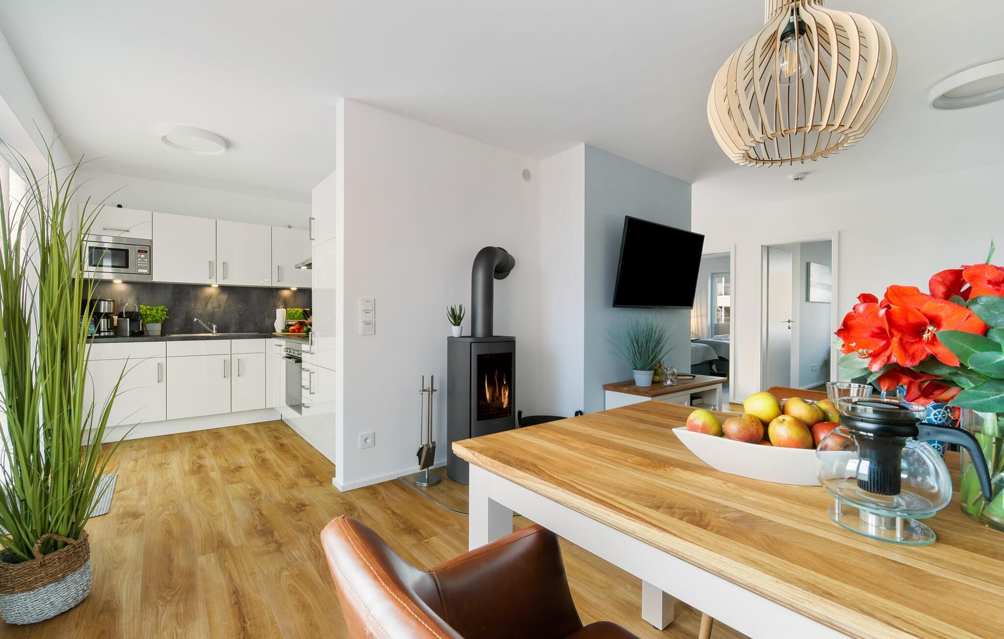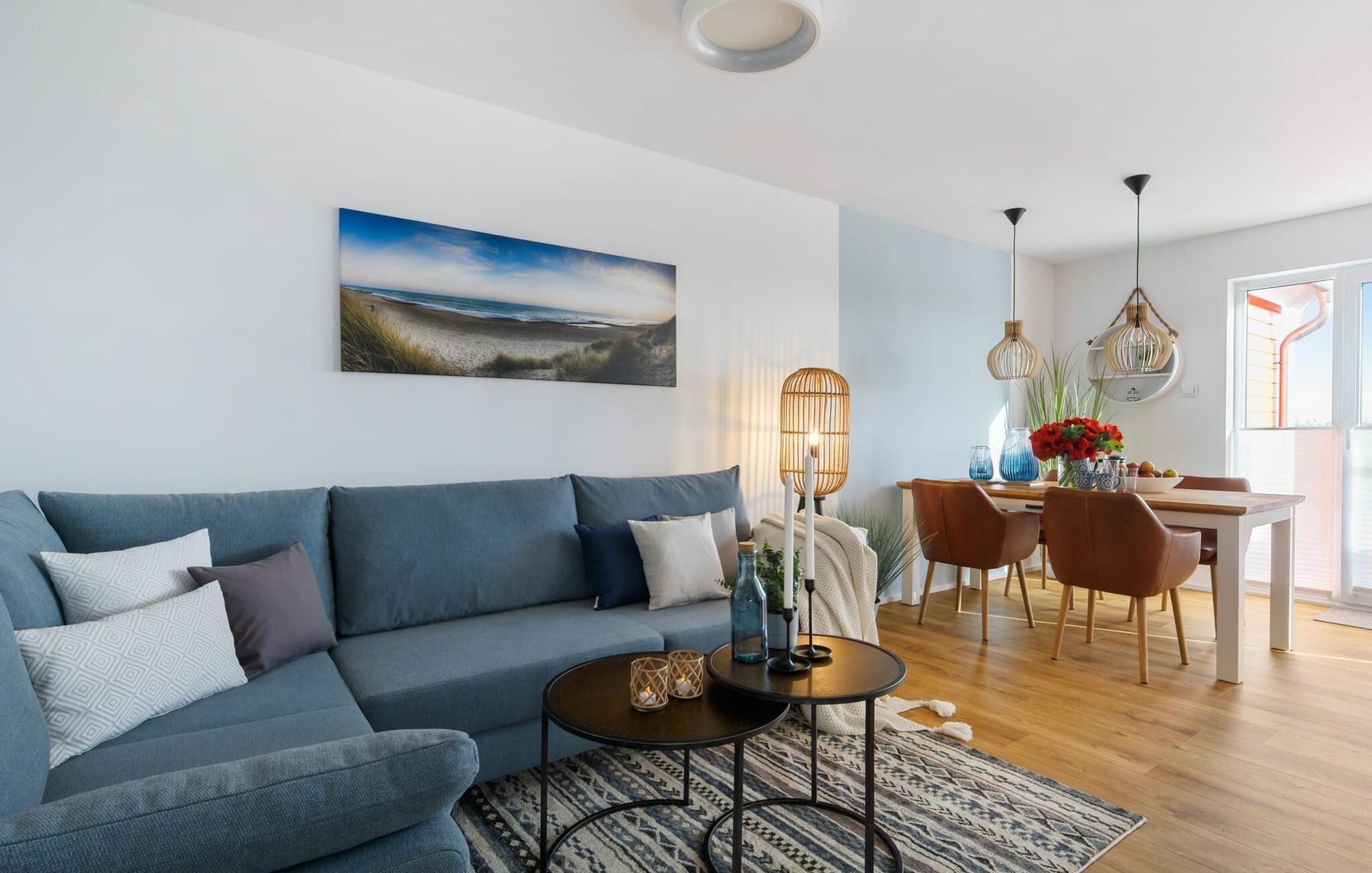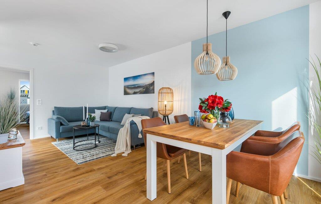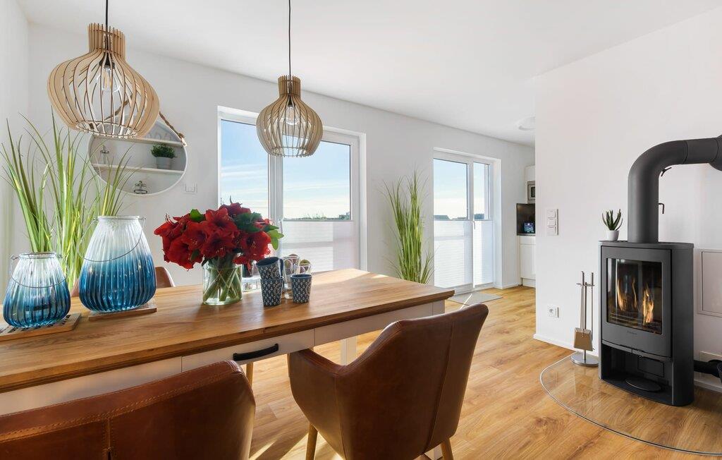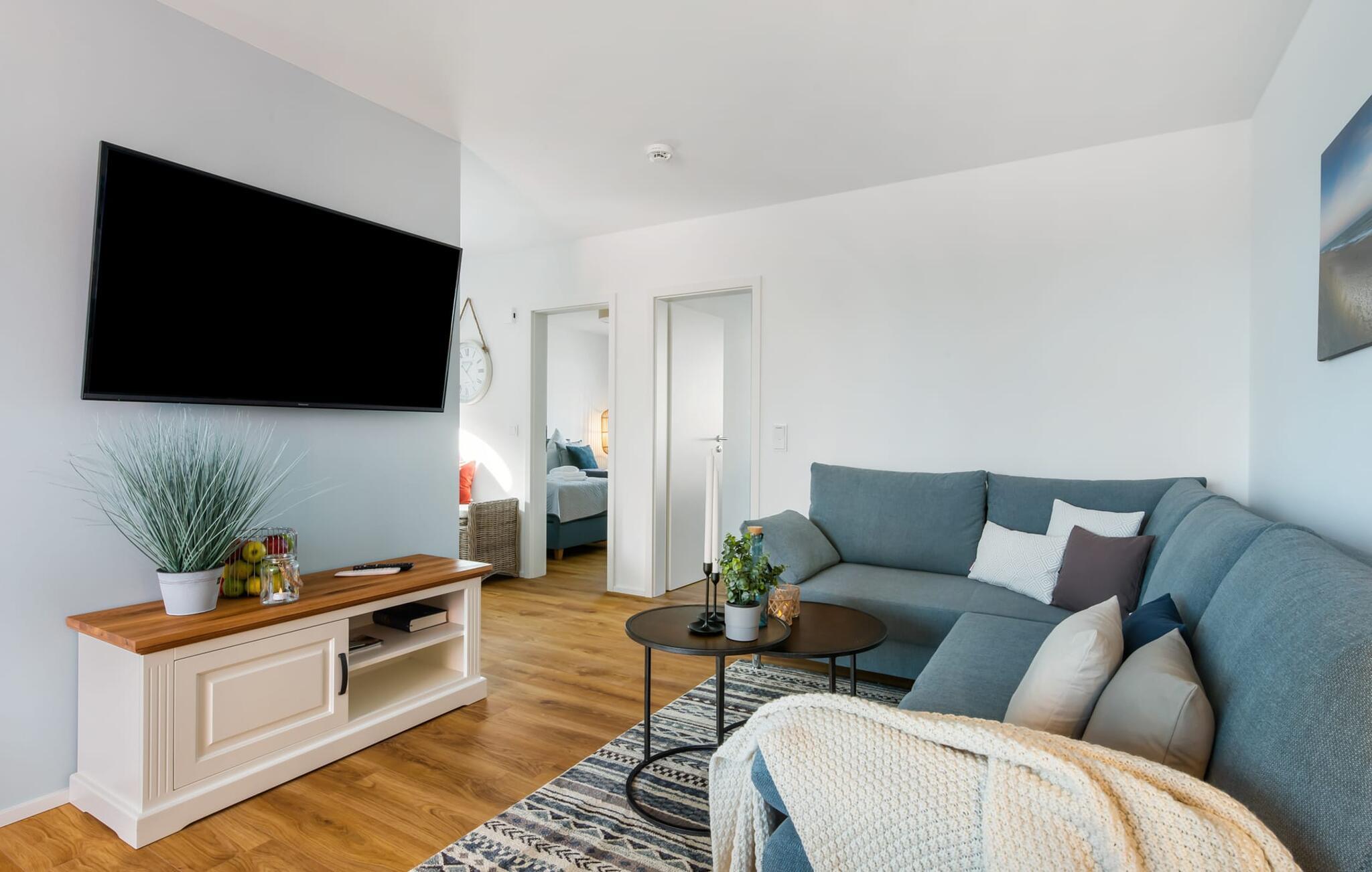Med sine maritime møbler og den elegante blanding af farvematerialer, sætter boligen særlige accenter i Ostsee Resort Olpenitz, som smelter sammen med den smukke natur på en næsten unik måde. I den kølige årstid giver gulvvarme behagelig varme. Den åbne og rummelige stue/alrum med fjernsyn og panoramaudsigt over landskabet lover sine gæster tid og plads til at føle sig godt tilpas fra første øjeblik.