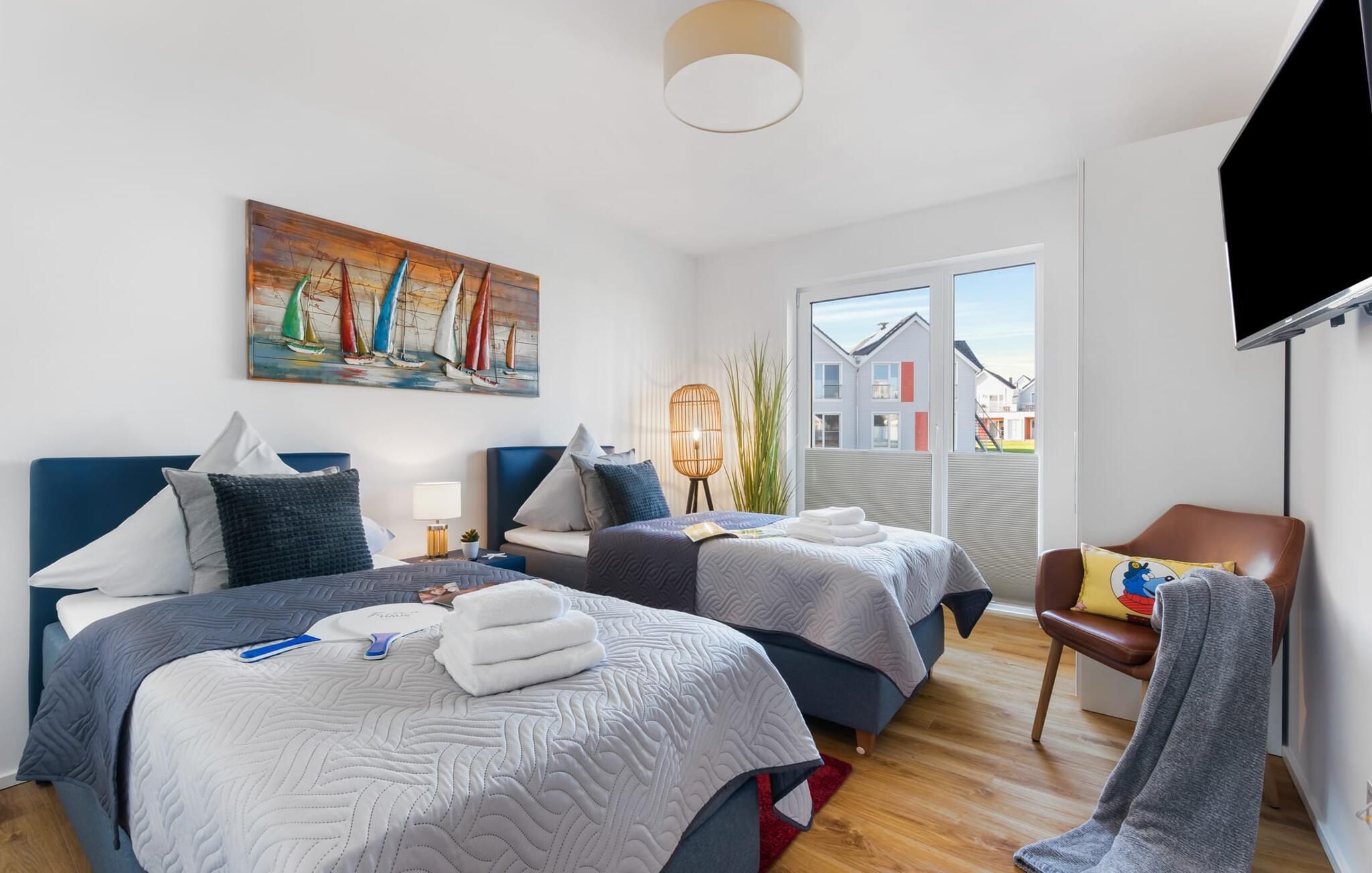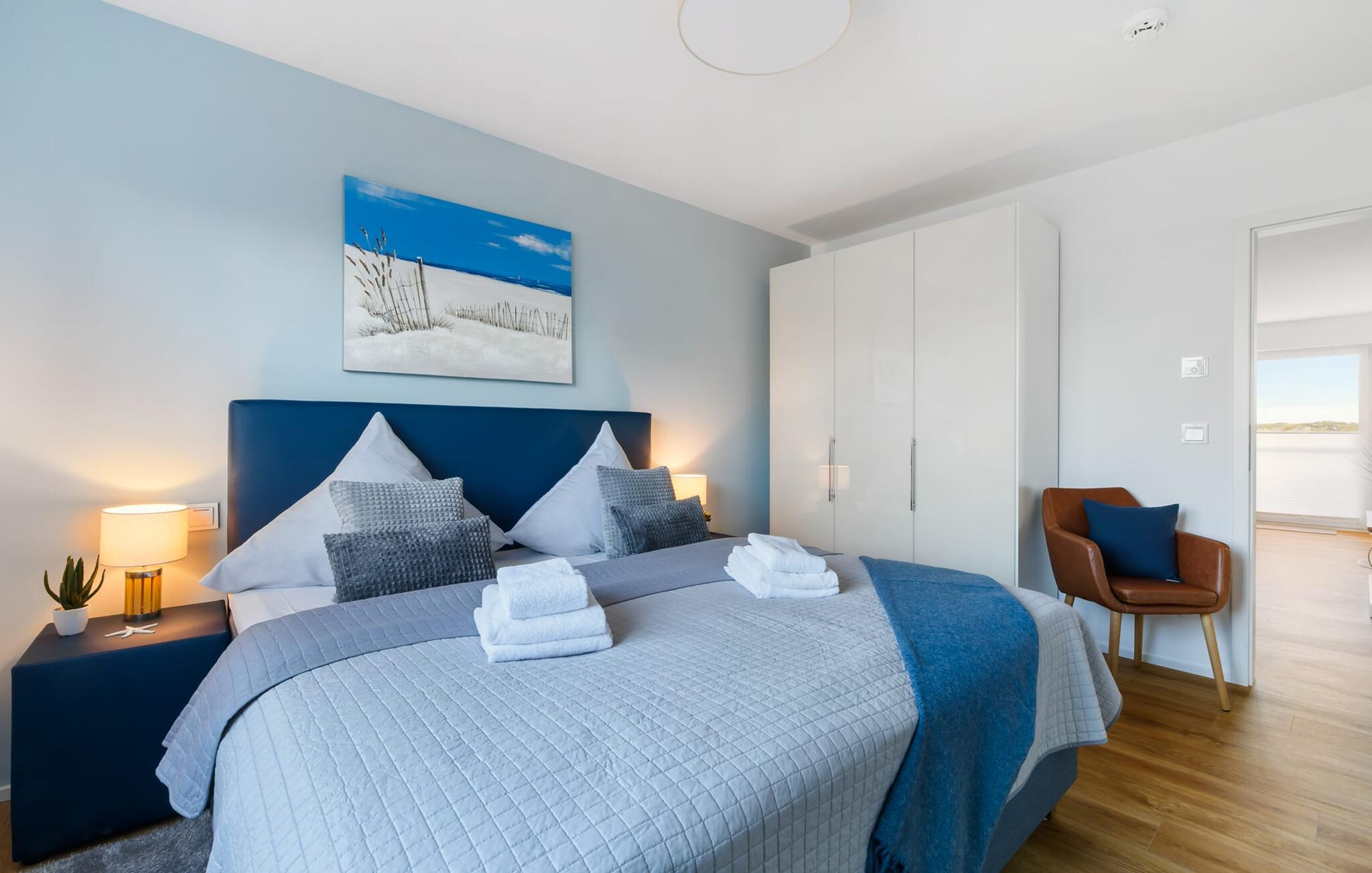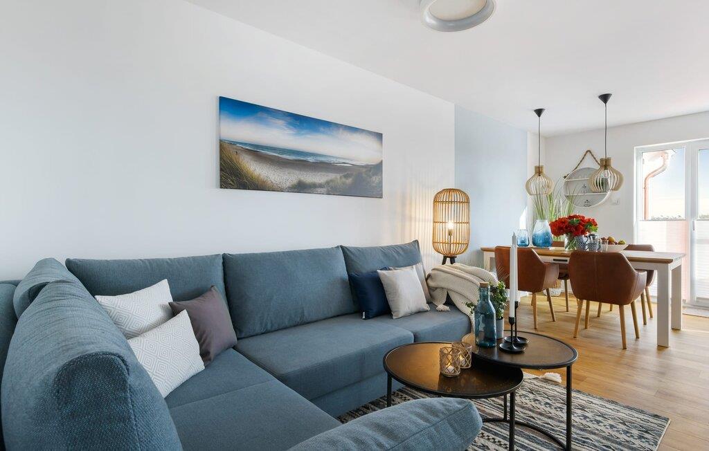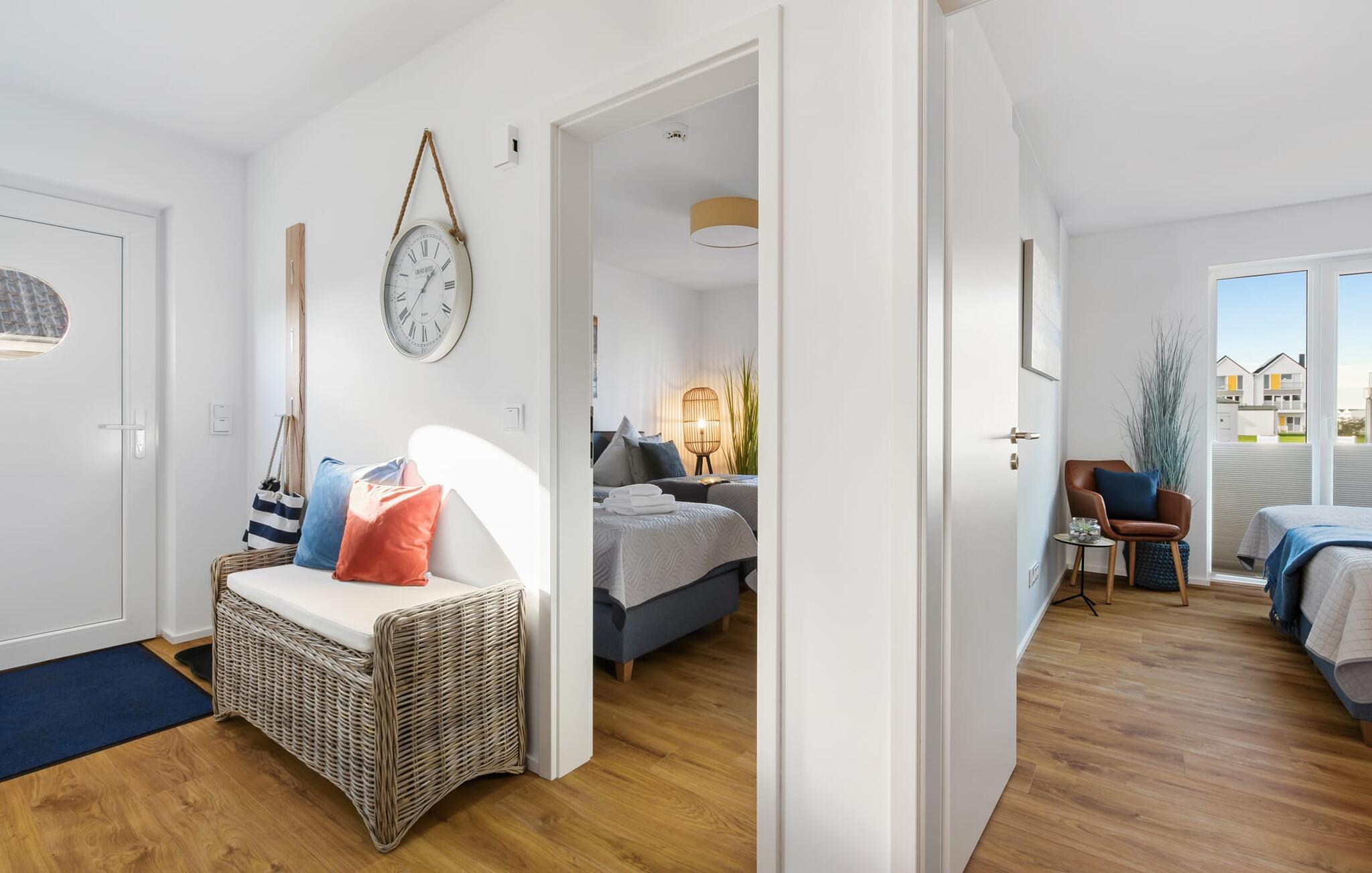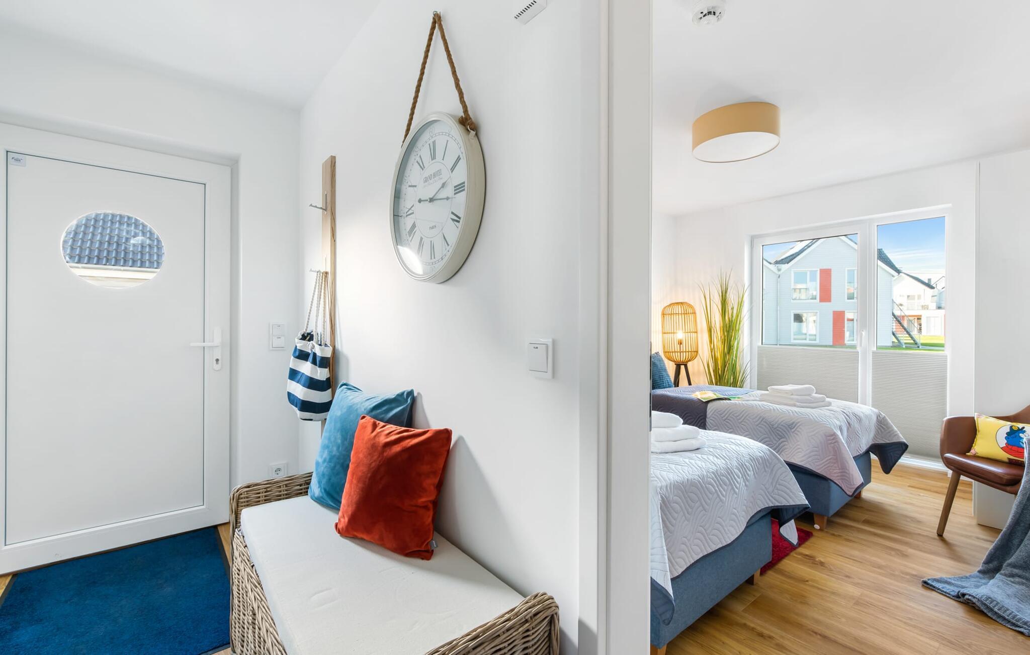 Med sine maritime møbler og den elegante blanding af farvematerialer, sætter boligen særlige accenter i Ostsee Resort Olpenitz, som smelter sammen med den smukke natur på en næsten unik måde. I den kølige årstid giver gulvvarme behagelig varme. Den åbne og rummelige stue/alrum med fjernsyn og panoramaudsigt over landskabet lover sine gæster tid og plads til at føle sig godt tilpas fra første øjeblik.
