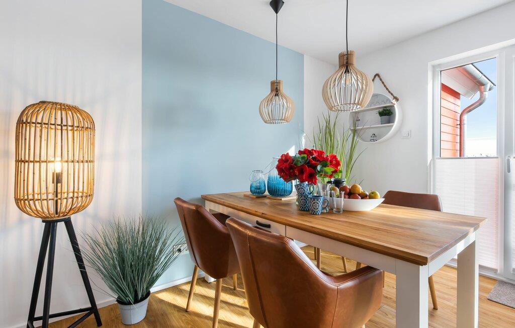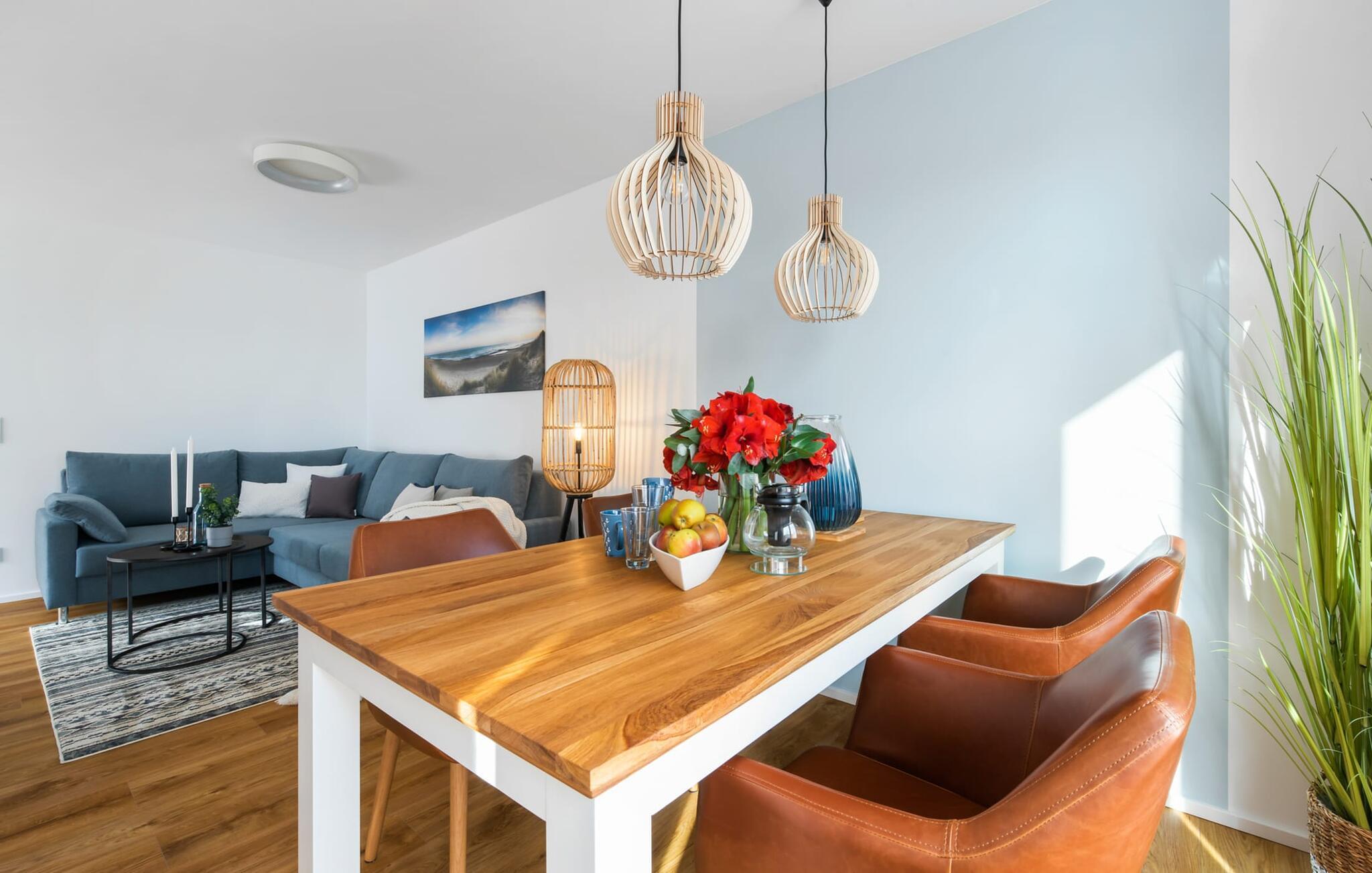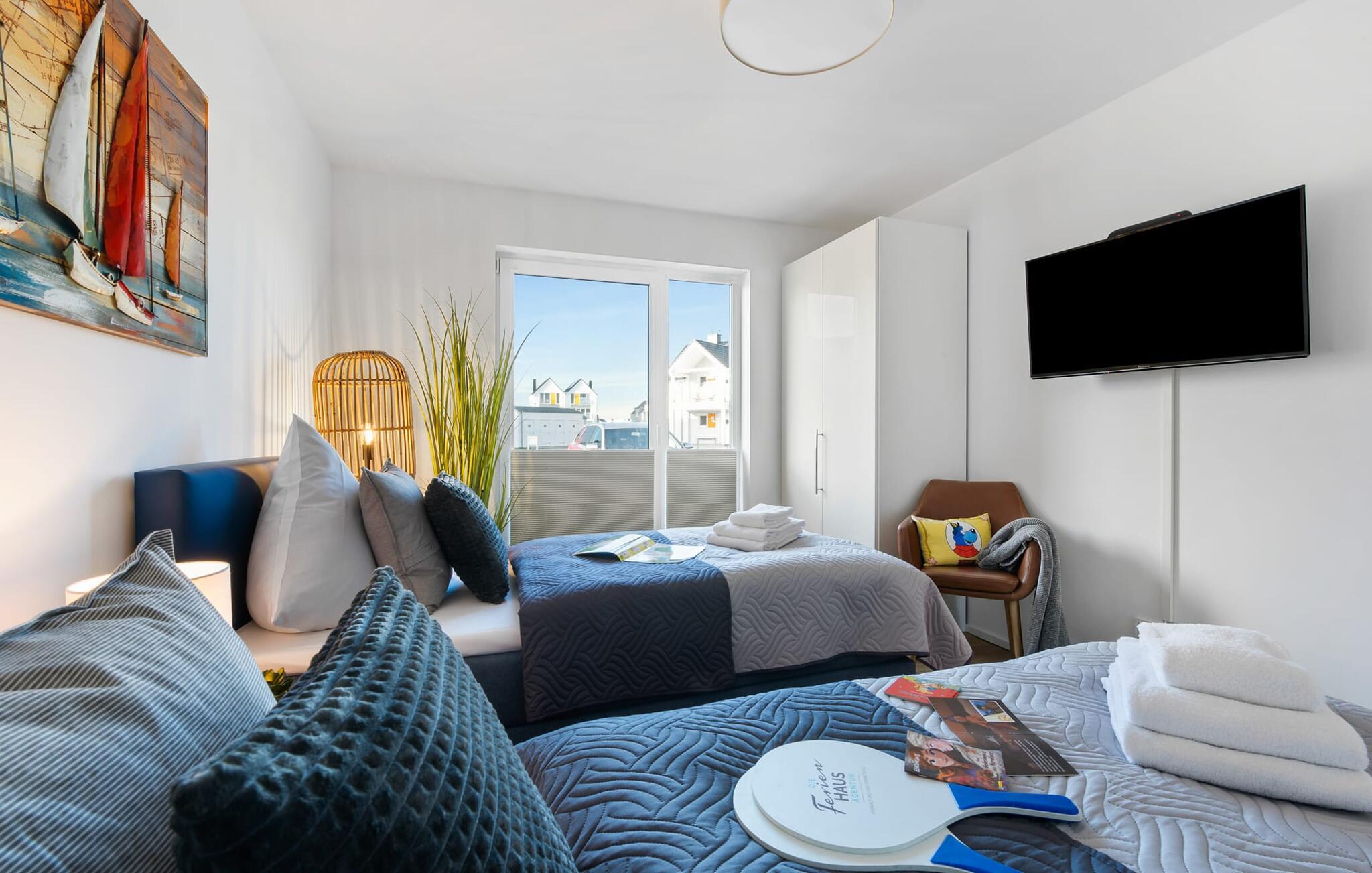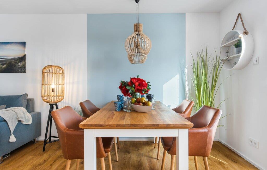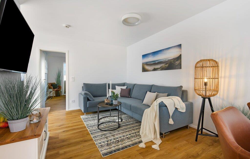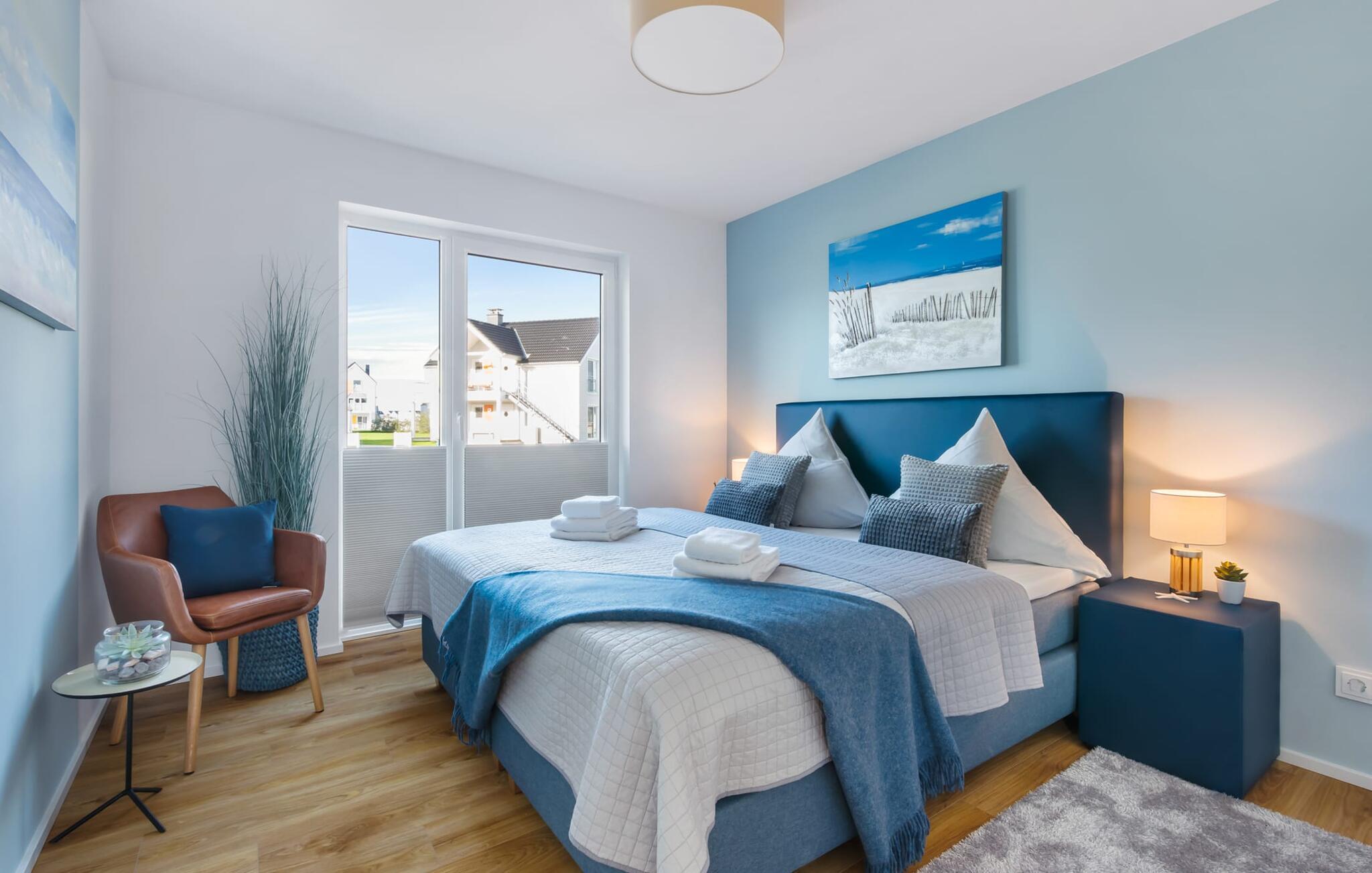 Med sine maritime møbler og den elegante blanding af farvematerialer, sætter boligen særlige accenter i Ostsee Resort Olpenitz, som smelter sammen med den smukke natur på en næsten unik måde. I den kølige årstid giver gulvvarme behagelig varme. Den åbne og rummelige stue/alrum med fjernsyn og panoramaudsigt over landskabet lover sine gæster tid og plads til at føle sig godt tilpas fra første øjeblik.