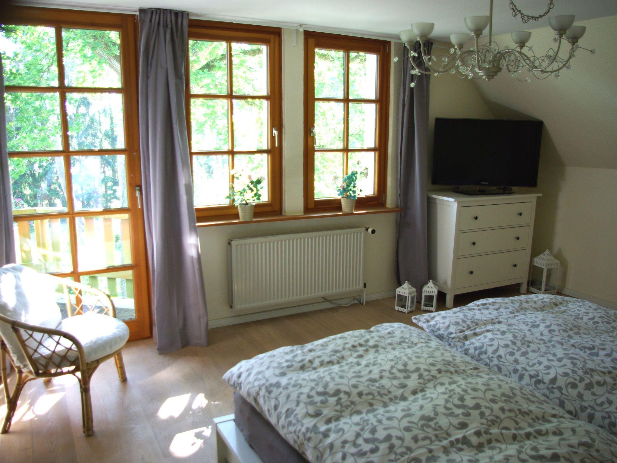 This apartment is characterised by an individual layout and tasteful furnishing in a rustic style. It is on the upper floor and has two living rooms, each equipped with a big LCD TV and a DVD player for cinema experiences. A micro stereo system with a docking station for your iPhone or MP3 player is also provided. You can relax on the big, cosy sofas, which can also be used as sofa beds. In good weather you can enjoy the wonderful view from the balcony. In bad weather you can relax with a good book and a great view in the conservatory, which also includes a generous balcony with garden furniture and a grill. There are three bedrooms, two with a double bed (180 and 140cm wide) and one with two single beds, all with high-quality antiallergenic mattresses, ensuring a good night’s sleep. The quality built-in kitchen with a kitchen block provides everything you need and includes a