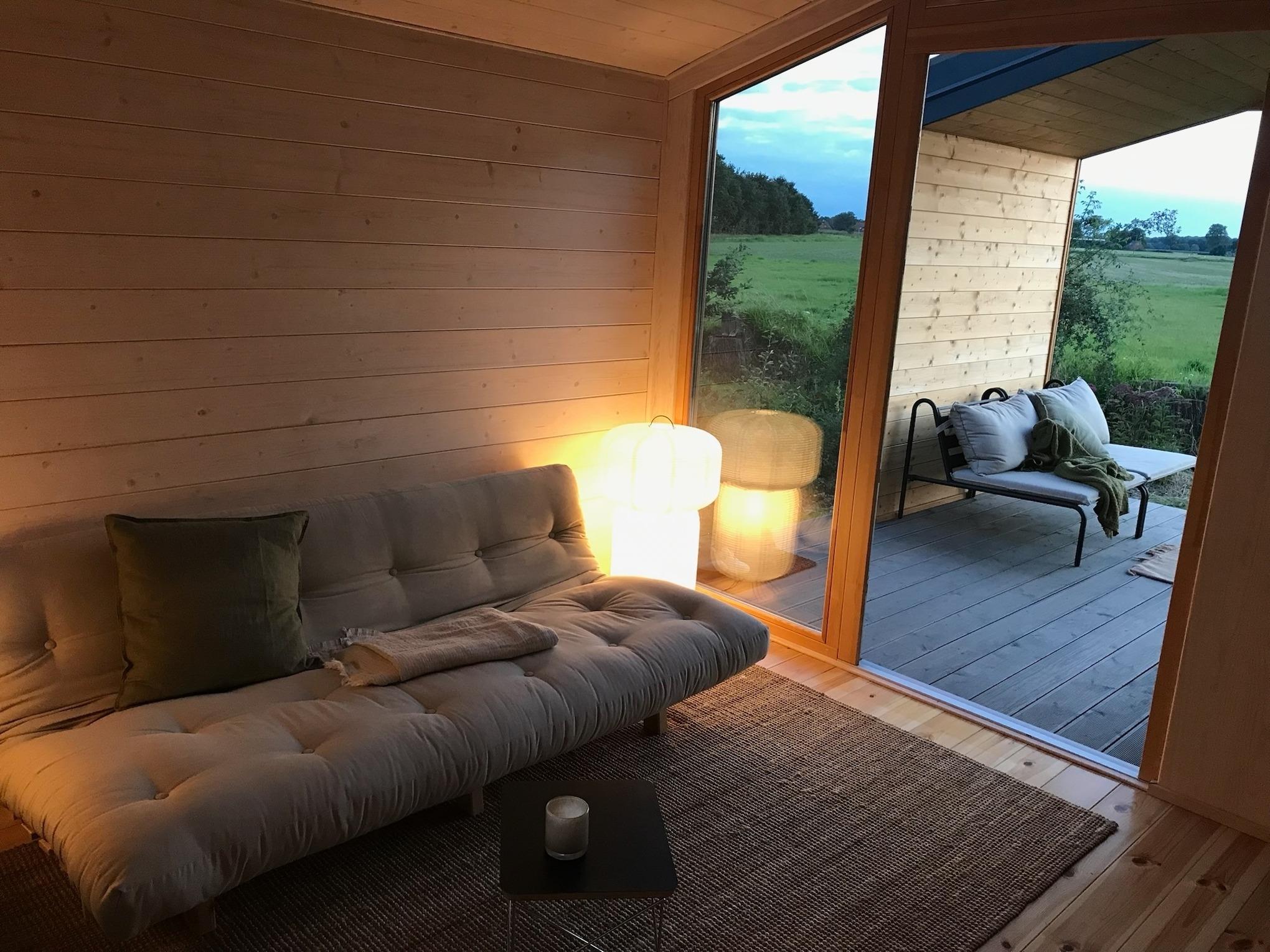 Dieses Tiny House eignet sich für alle, die auf der Suche nach einer kleinen Auszeit in der Natur, Erholung und Ruhe sind. Es befindet sich in unmittelbarer Nähe zur Elbe und mitten im Biosphärenreservat. Von Hamburg aus erreicht man das Tiny House in etwa einer Stunde mit dem Auto. Das Haus ist im minimalistischen Design und hochwertig eingerichtet. Es bietet den Charme und die Gemütlichkeit eines Tiny Houses, lässt dabei aber keinen Komfort vermissen. Die Unterkunft besteht aus insgesamt zwei Räumen und einem separatem Tageslichtbad mit Regendusche und Fußbodenheizung. Die gut ausgestattete Küche hält alles bereit, was zum Kochen benötigt wird. Dank Spülmaschine ist das Abwaschen danach nicht notwendig. Das Doppelbett im abgetrennten Schlafzimmer bietet Platz für zwei Erwachsene. Im Wohn-Essbereich findet sich darüber hinaus eine Schlafcouch, auf der man es sich bei Regenwetter mit einem guten Buch oder einem Kaffee gemütlich machen kann. Bei sonnigem Wetter lädt hingegen die großzügige Terrasse zum Verweilen ein. Von hier lässt sich die Ruhe und der unverbaute Ausblick ins Grüne genießen. Auf den zur Verfügung stehenden Sportmatten kannst du den Morgen mit einer entspannenden Yogaeinheit beginnen. Eine Abkühlung ist anschließend in der nur wenige Meter entfernten Elbe möglich. Auch bietet sich ein langer Spaziergang oder eine Radtour entlang der Elbe mit Halt an einem der vielen kleinen Strände an. Mit etwas Glück kannst du dabei eine Storchenfamilie oder einen Biber beobachten. Die Abendsonne auf der Outdoorlounge macht den Tag schließlich perfekt. In den kälteren Monaten kannst du es dir alternativ an der Feuerschale gemütlich machen.