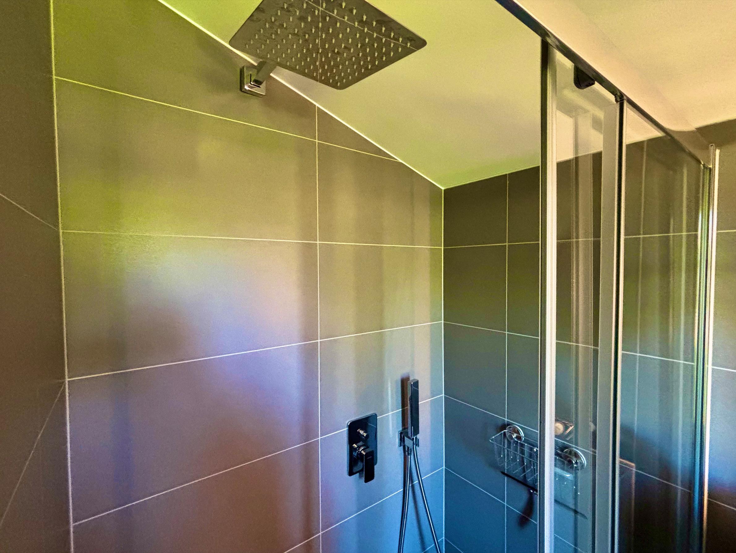 Das 30qm große Ferienhaus bietet eine vollausgestattete Küche mit Kühlschrank, Ofen und Spülmaschine. Das Vollbad ist mit einer luxuriösen Regenwalddusche ausgestattet. Im Schlafzimmer erwartet Sie ein gemütliches Doppelbett mit viel Stauraum, während das Wohnzimmer eine Schlafcouch und einen Smart TV bereithält. Die Terrasse lädt mit einer Liegelandschaft und einer Sitzecke zum Entspannen ein.