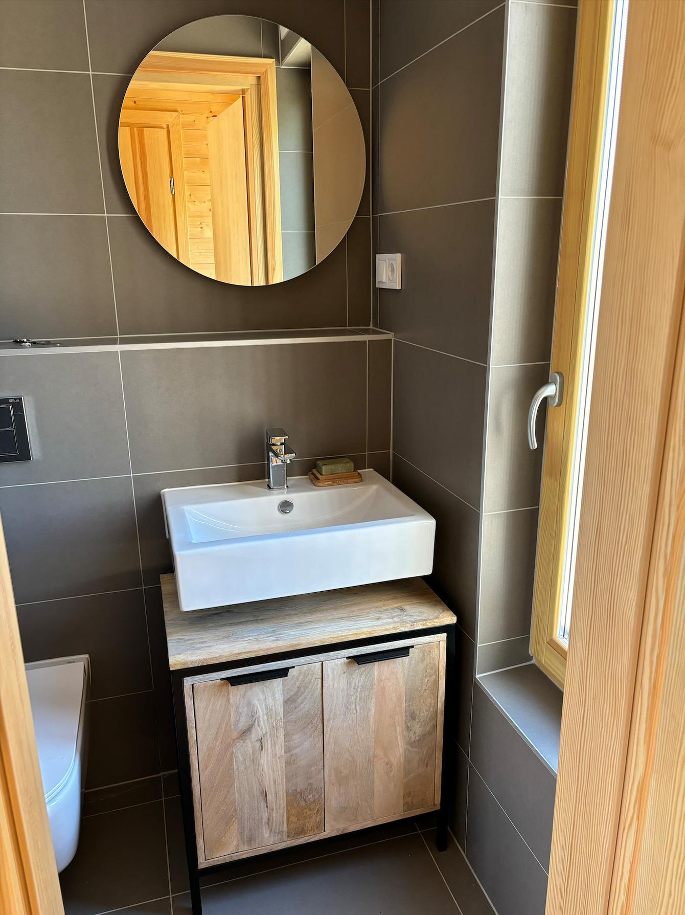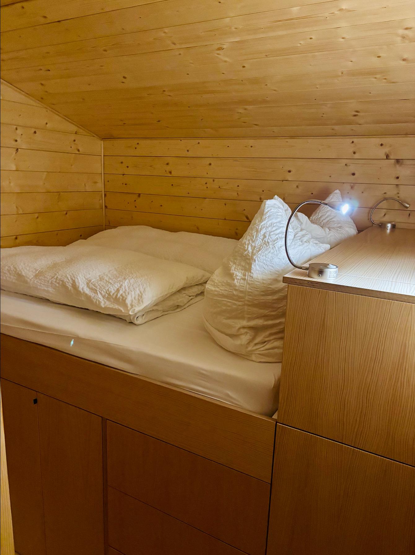 Das Tiny Hideaway besticht durch eine geschmackvolle Einrichtung, bei der auf die Nutzung natürlicher Rohstoffe wie Holz, Metall und Stein, sowie neutralen, in der Natur vorkommenen Farben geachtet wurde. Hier kann man abschalten und die Natur voll auf sich wirken lassen, ohne dabei auf Komfort zu verzichten.
