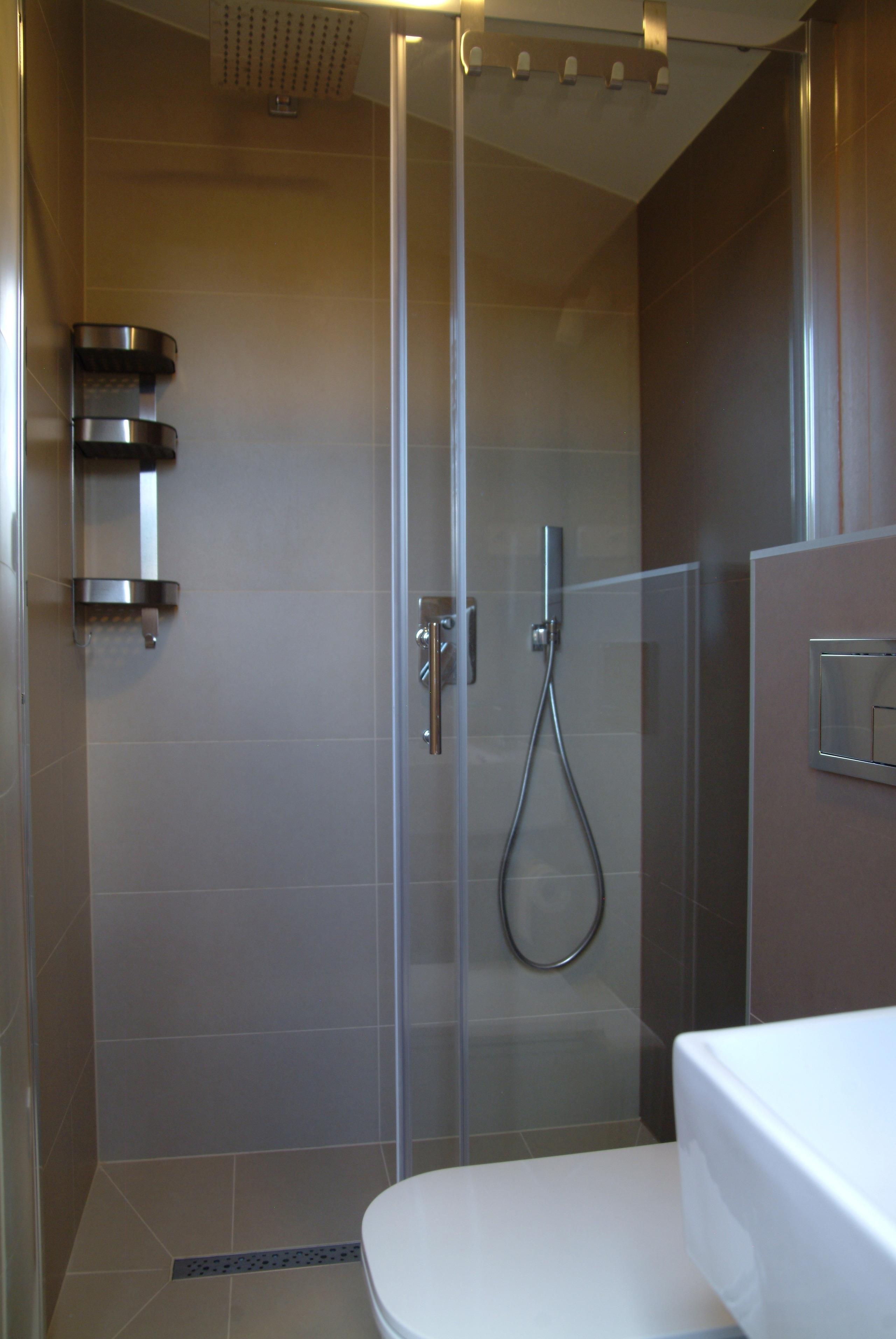 1 Badezimmer mit WC, Regendusche und Haartrockner