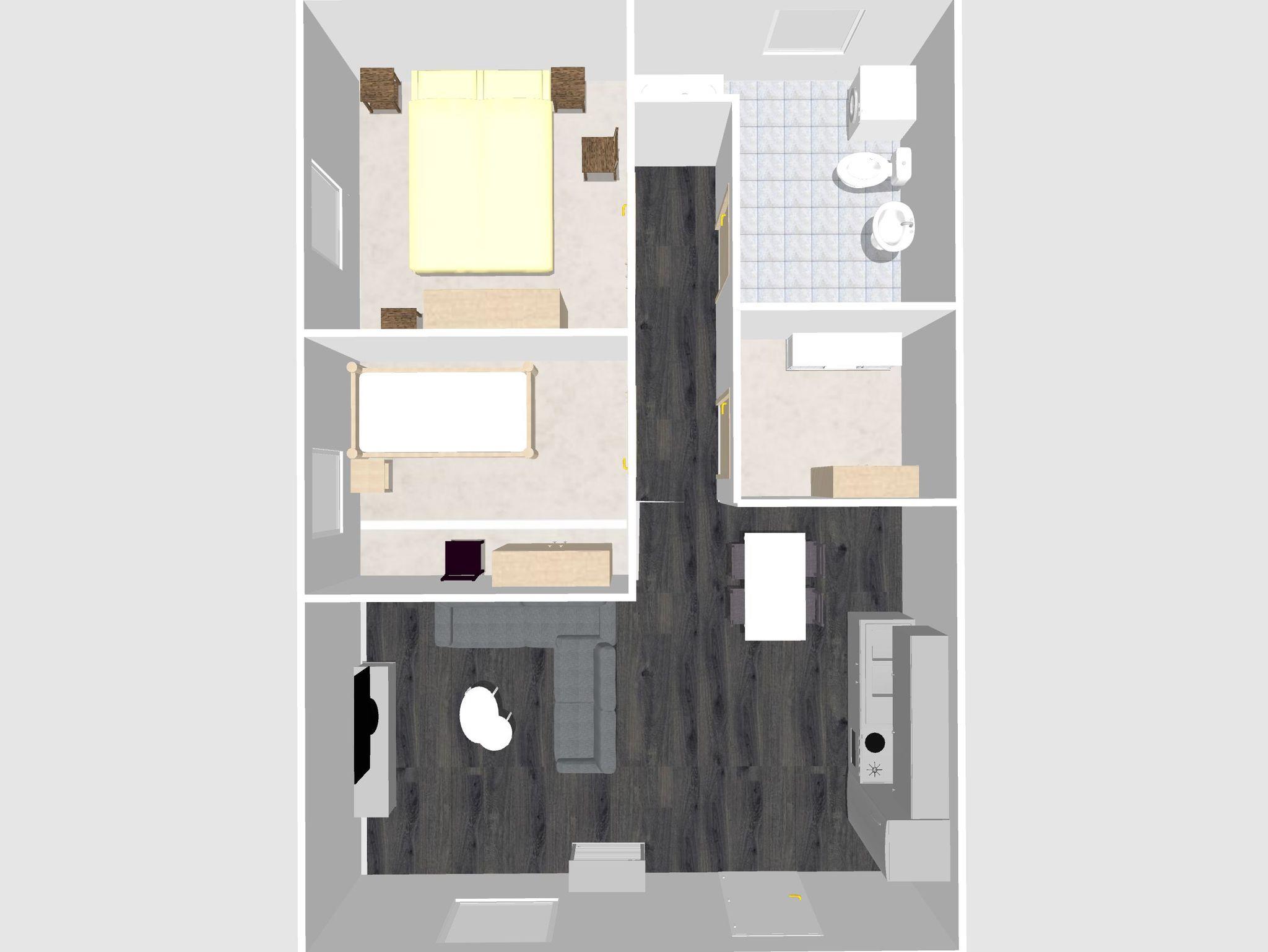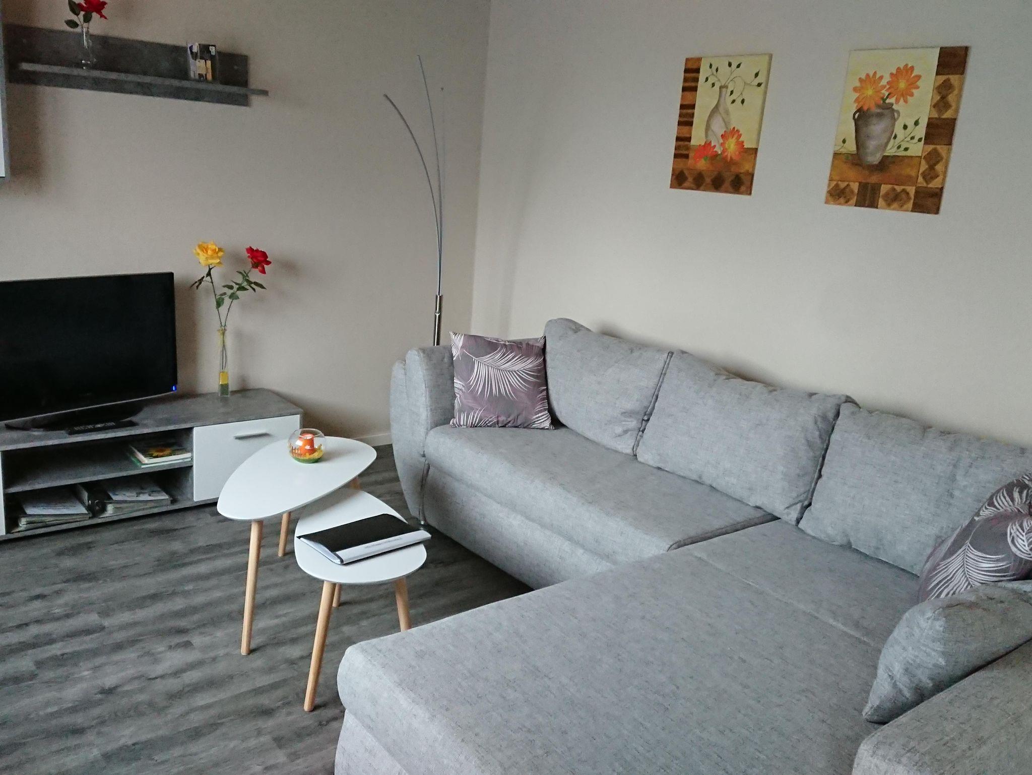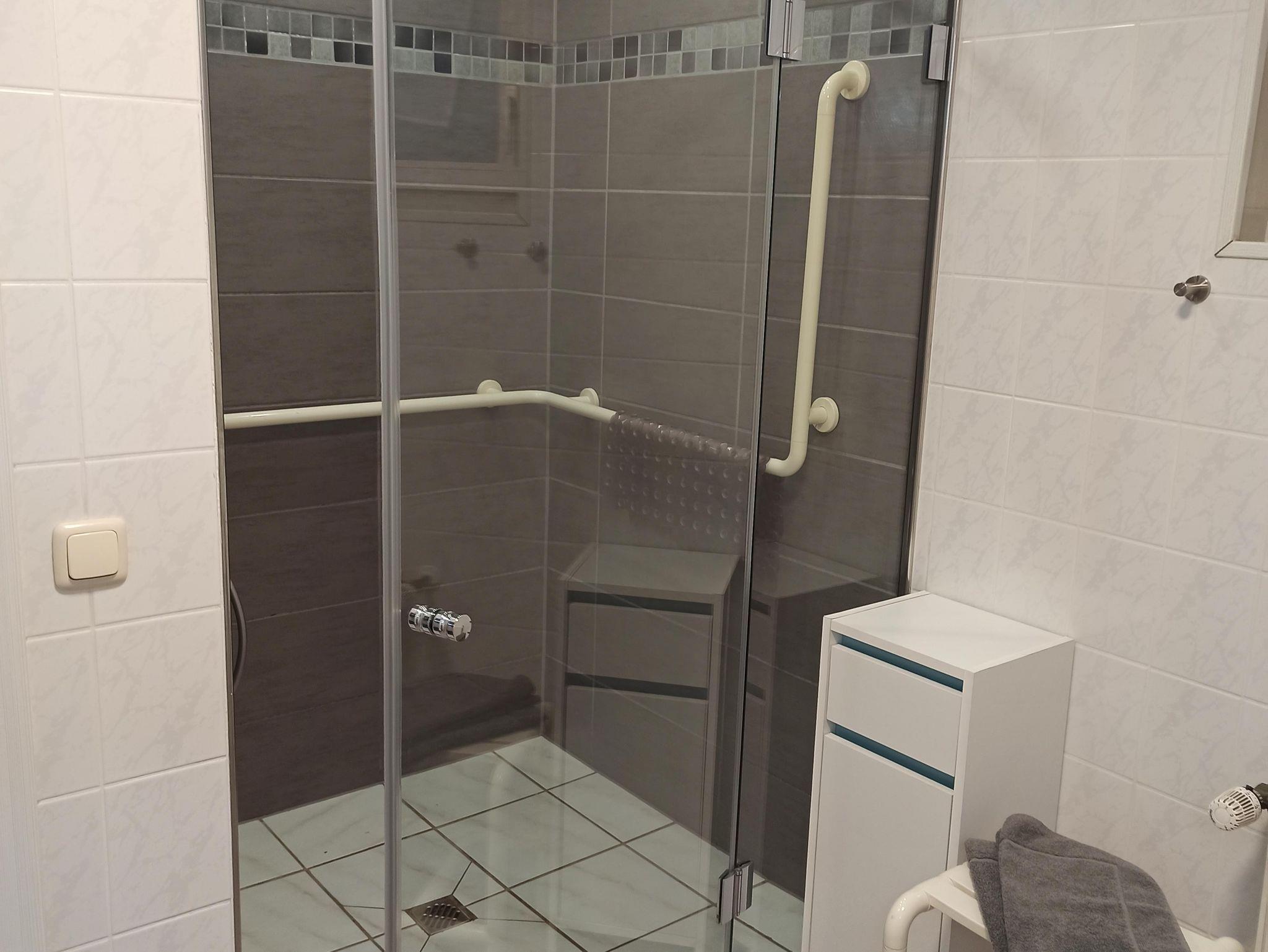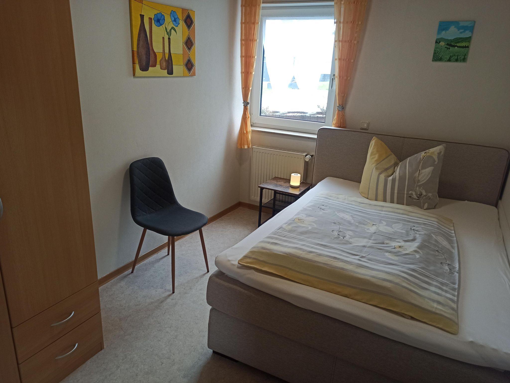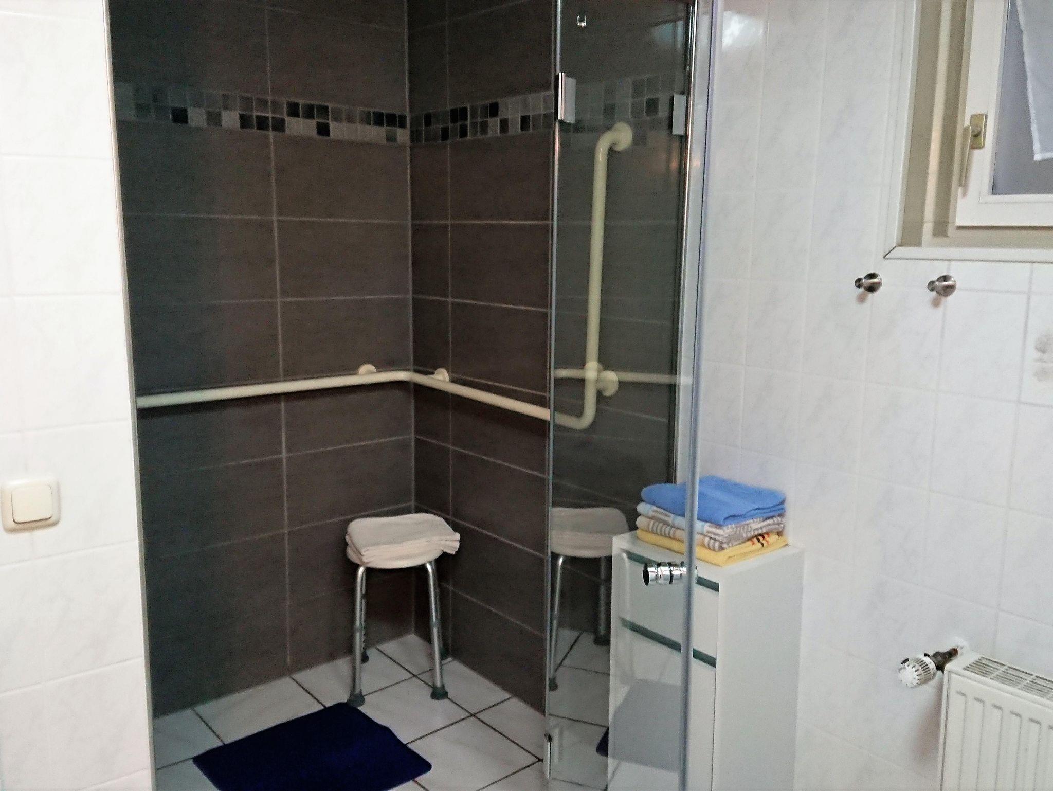 Die ebenerdige und behindertengerechte Wohnung bietet auf ca. 60 qm eine großzügige Wohnküche mit Küchenzeile, Essecke und Couchgarnitur, Flachbildferseher mit Sat-TV, Radio mit CD-Player, W-Lan, 1 Schlafzimmer mit 1 Comfort-Doppelbett 180 x 200 cm, 1 Schlafzimmer mit 1 Boxspringbett 140 x 200 cm, Bad mit Dusche/WC u. Waschmaschine, 1 Abstellraum