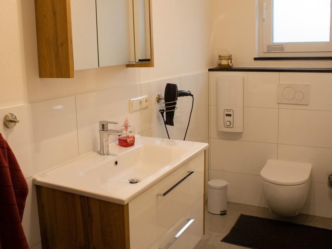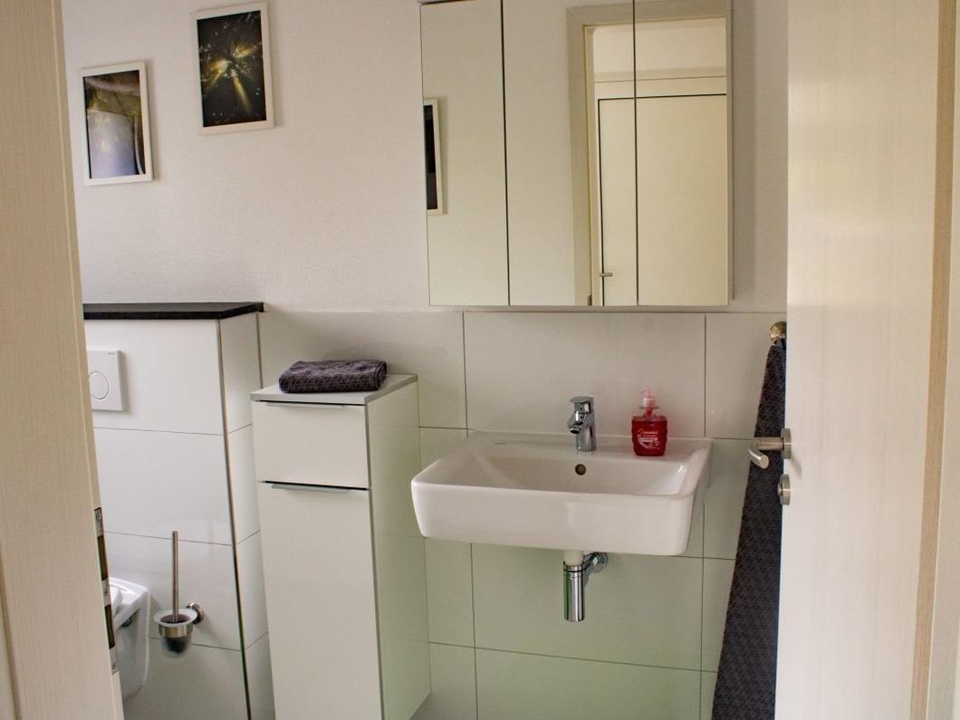 Gäste-WC und Bad mit bodengleicher Dusche, Fön, Waschmaschine