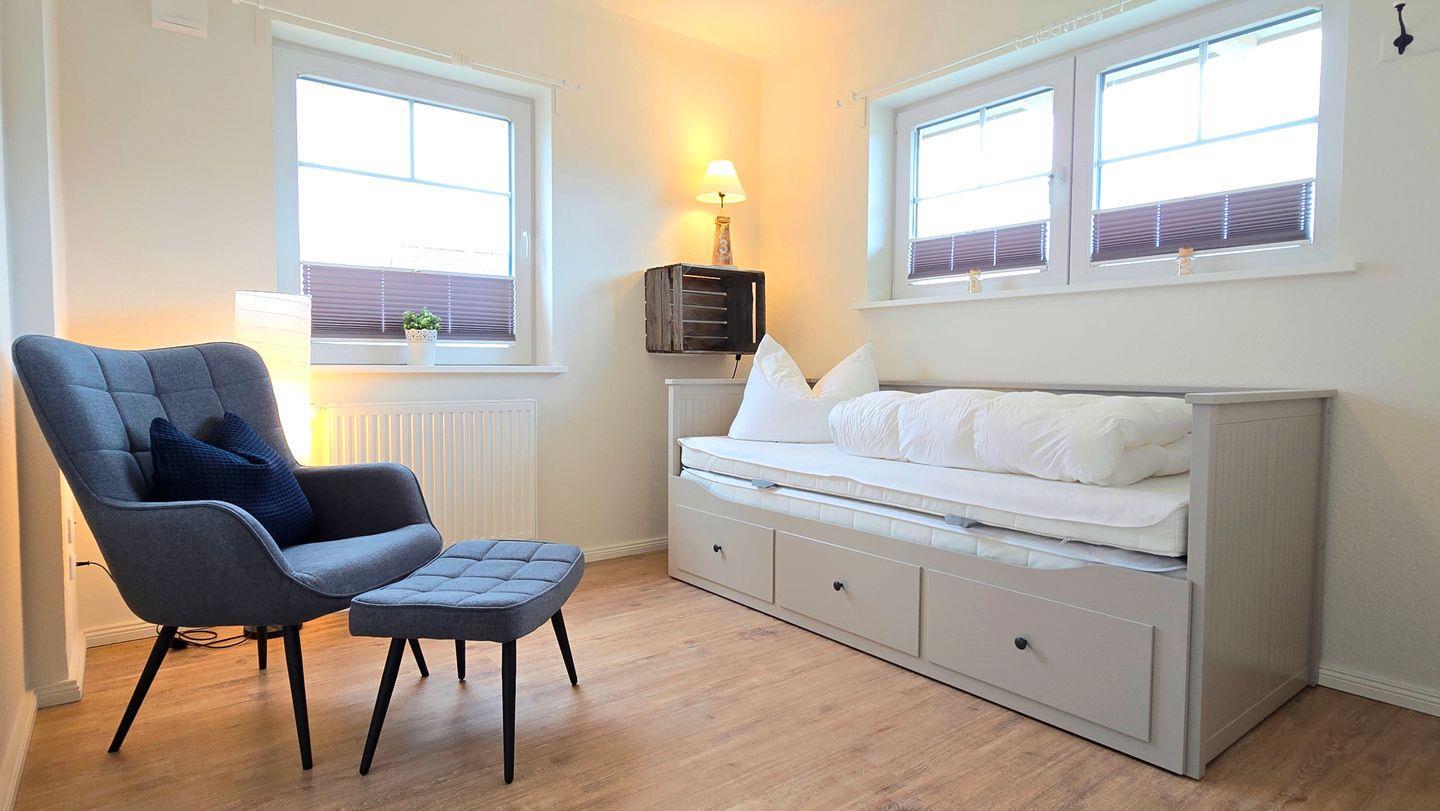 Schlafzimmer I (EG): 2 Einzelbetten (90x200) / Kleiderschrank / Kommode