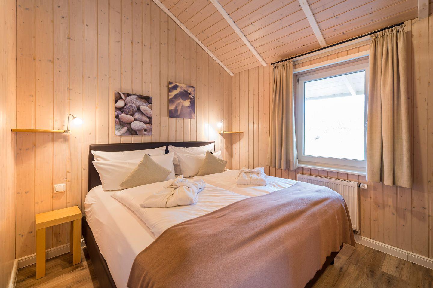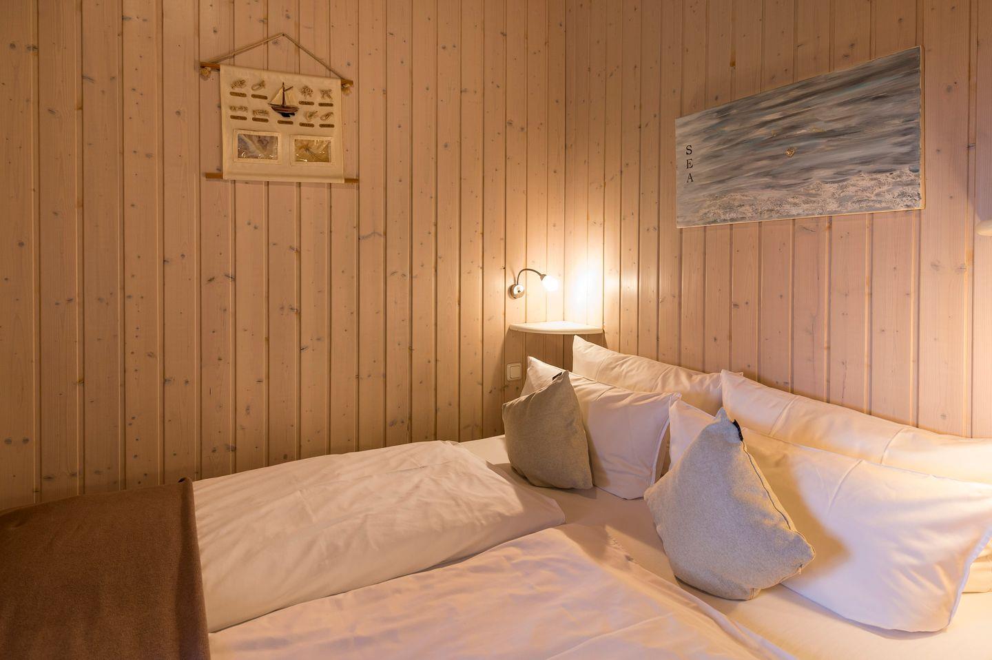 Es ist sehr luxuriös ausgestattet mit Sauna, Whirlbadewanne und Dusche im großen Badezimmer. Zudem gibt es ein separates Gästebad mit WC und Dusche. Die beiden Elternschlafzimmer mit je einem Doppelbett, sowie das Kinderzimmer mit Etagenbett, laden zum gemütlichen Schlafen ein.