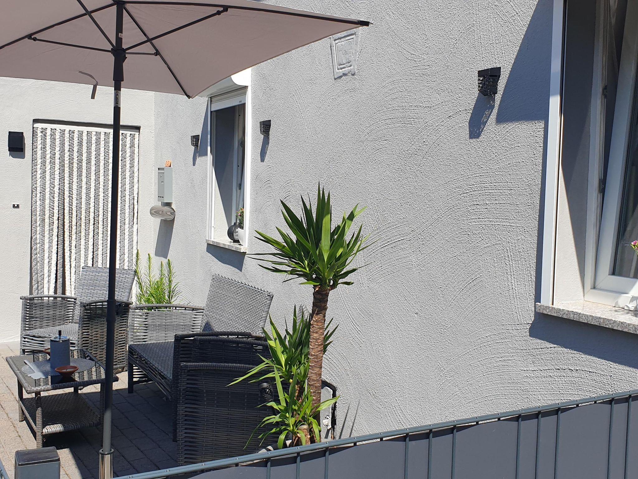 Im Außenbereich gibt es 2 Parkplätze direkt am Haus ebenso eine Terrasse mit Sitzgelegenheiten, Sonnenschirm und Grill.