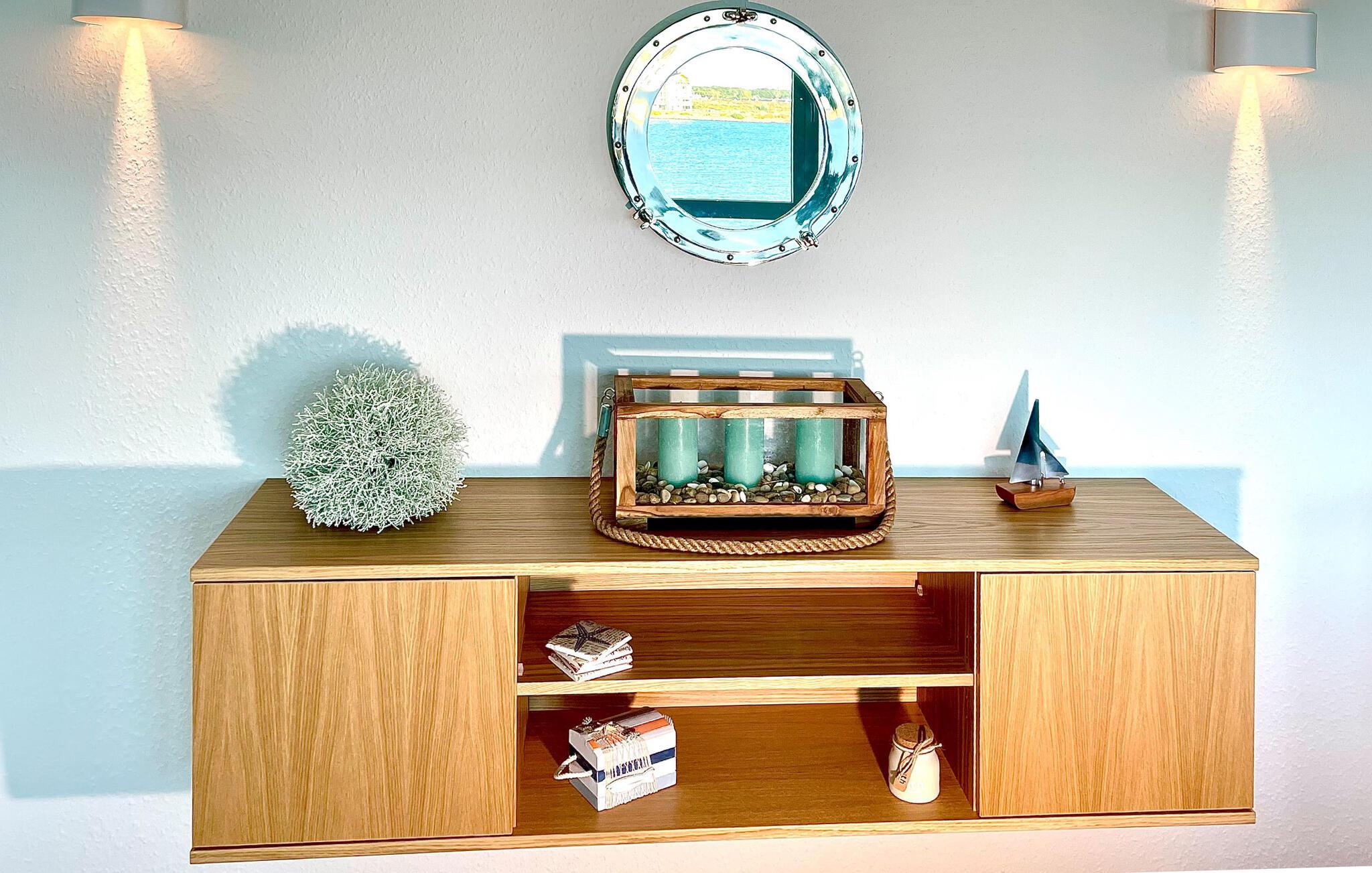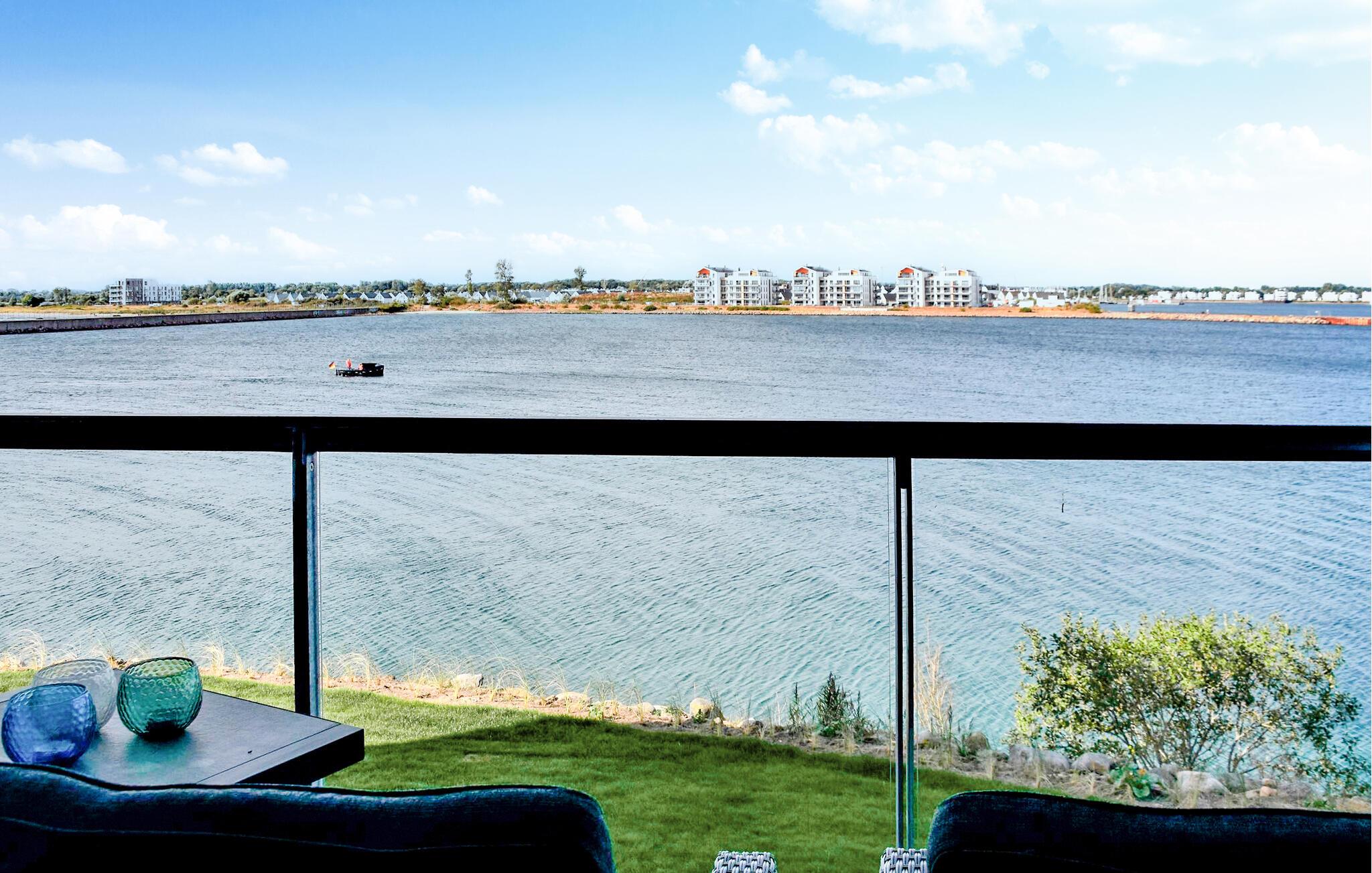 Vores ferielejlighed i Den Blå Lagune ligger lige ved molen, omgivet af havet på tre sider. Fra alle værelser og badeværelser, samt fra den beskyttede sydvestvendte loggia, har I direkte udsigt over vandet – uanset om det er fra sofaen, sengene, mens I laver mad, spiser ... selv mens I tager bad.