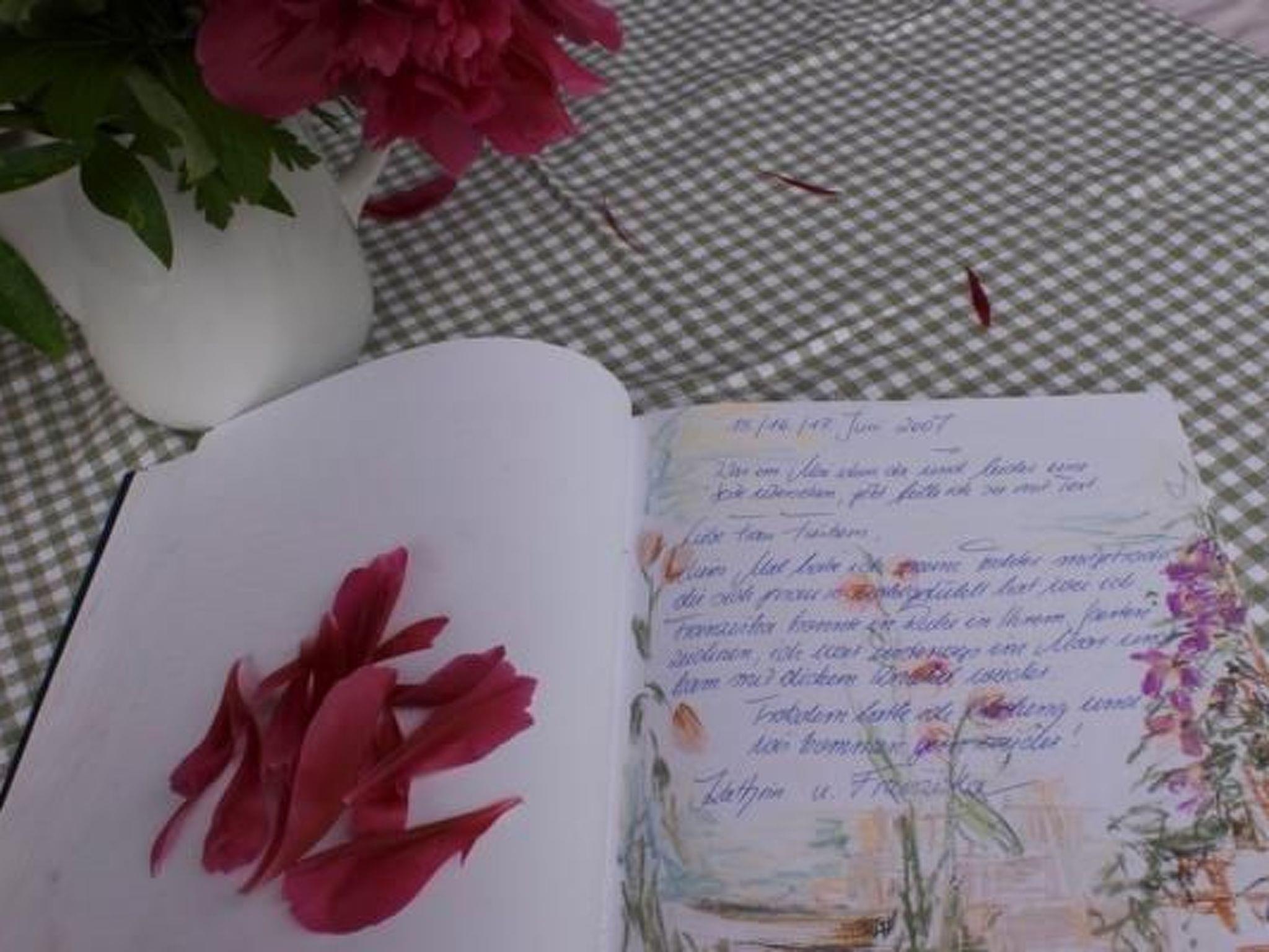 Our holiday home is located separately in the garden and has two bedrooms, living and dining room, fitted kitchen and bathroom. The fitted kitchen is equipped with a hob, oven, fridge, microwave, coffee machine, kettle and toaster. In the living room you will find a TV with satellite connection and a fireplace.